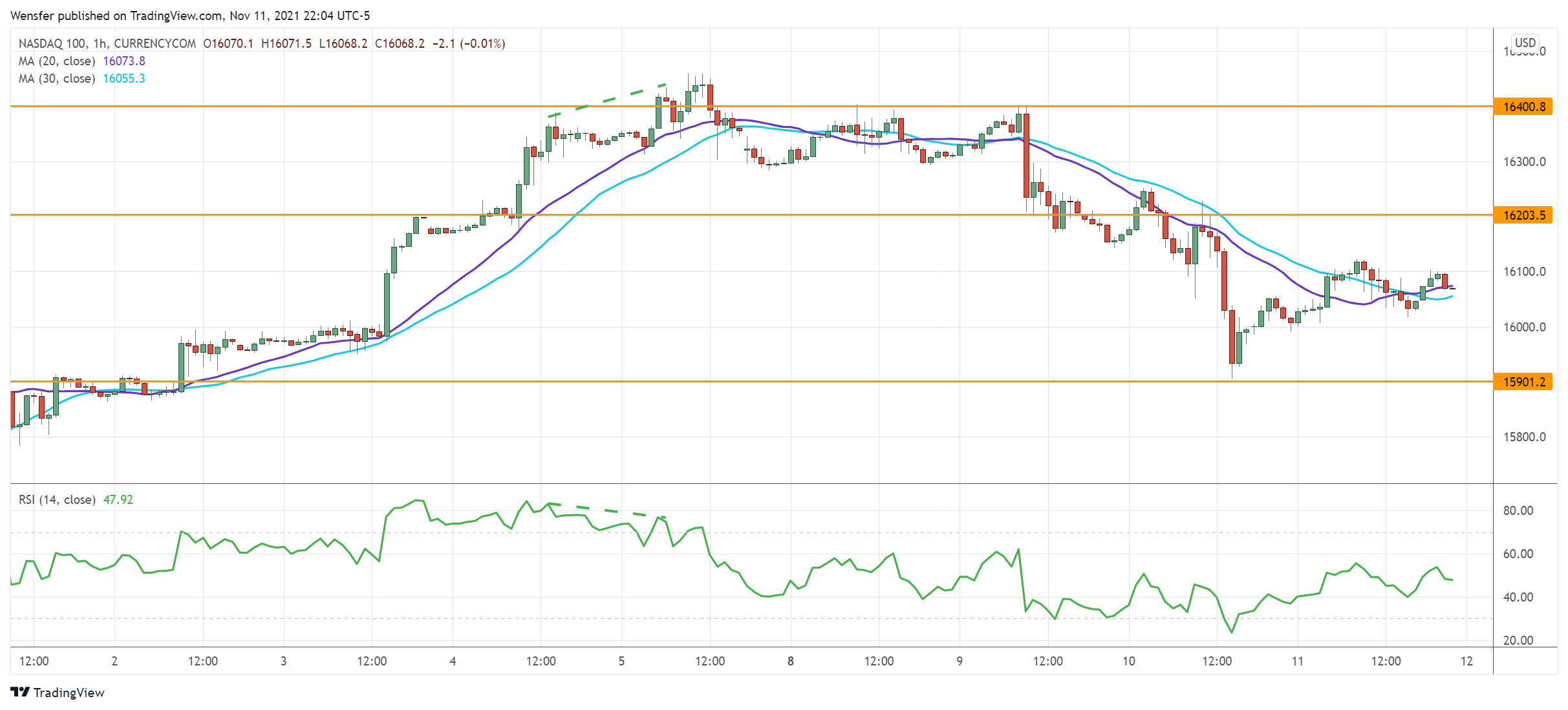 An RSI divergence showed a deceleration in the uptrend, a sign that the rally has overheated. Subsequently, a drop below 16200 has prompted leveraged buyers to exit for fear of a correction.