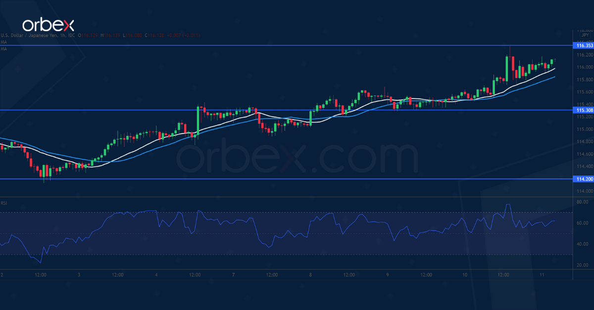 An overbought RSI on the hourly chart may briefly restrain the bullish fever. 115.30 is the closest support and the bulls may see a pullback as an opportunity to stake in.