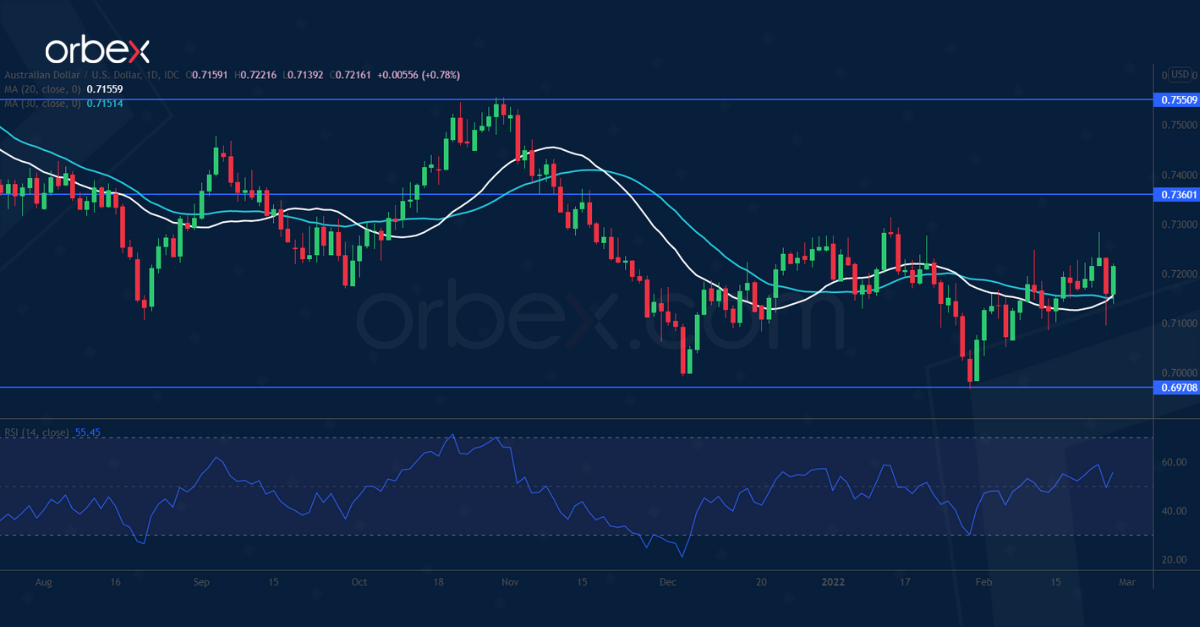 A deterioration in risk sentiment took a toll on the Australian dollar. War in Ukraine drove investors into safe havens and left riskier currencies such as the Aussie vulnerable.