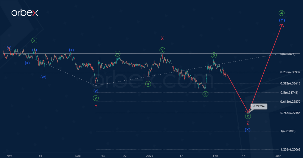 The market is likely to fall to the 6.275 area. At that level, wave Z will be at 76.4% along the Fibonacci lines of actionary wave Y.