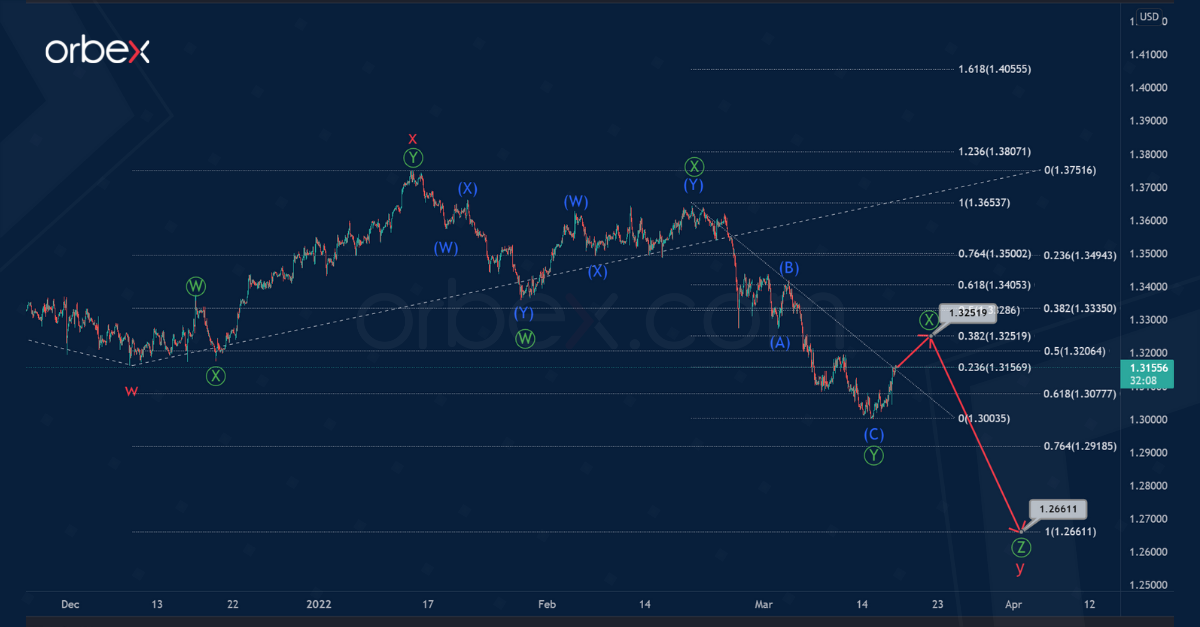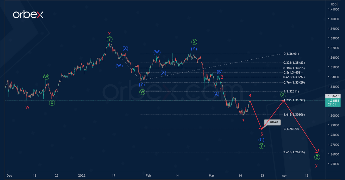 After the end of wave Ⓧ, the price could continue to fall in the primary wave Ⓩ to 1.266. At that level, cycle waves w and y will be equal.