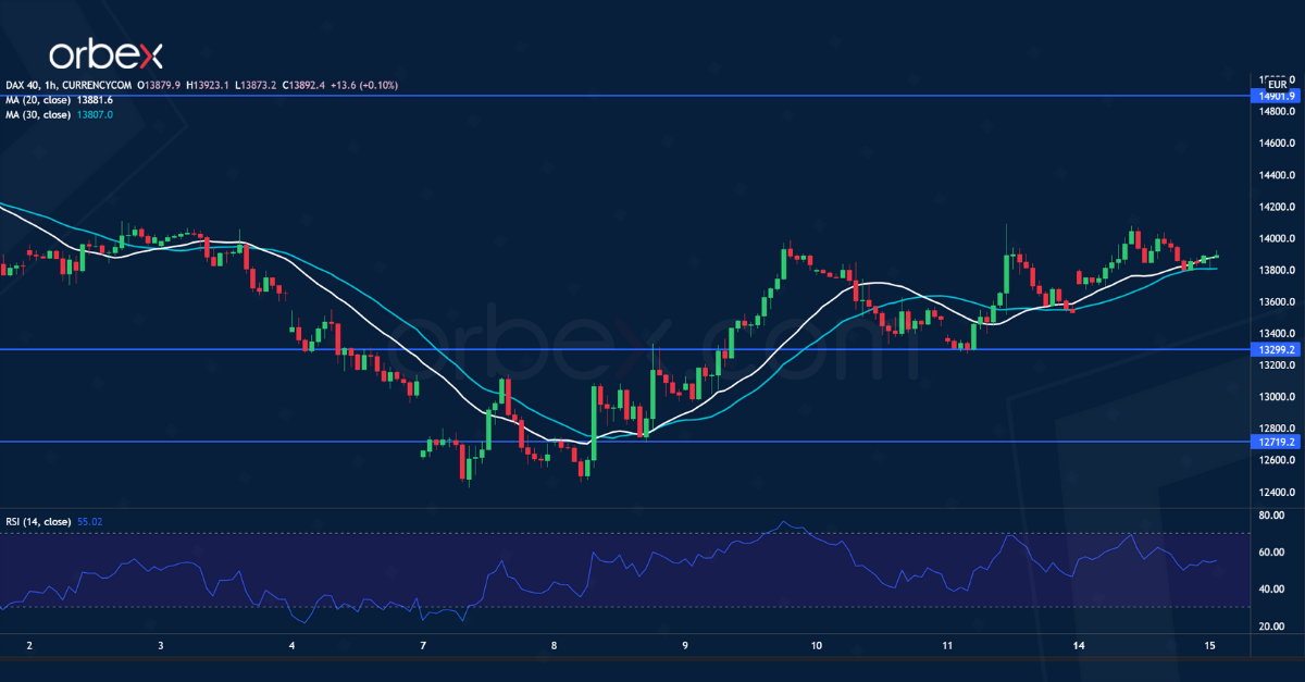 The Dax 40 edges higher as Russia and Ukraine hold a fourth round of talks. The index bounced off the demand zone (12500) from the daily chart, a sign that price action could be stabilizing.