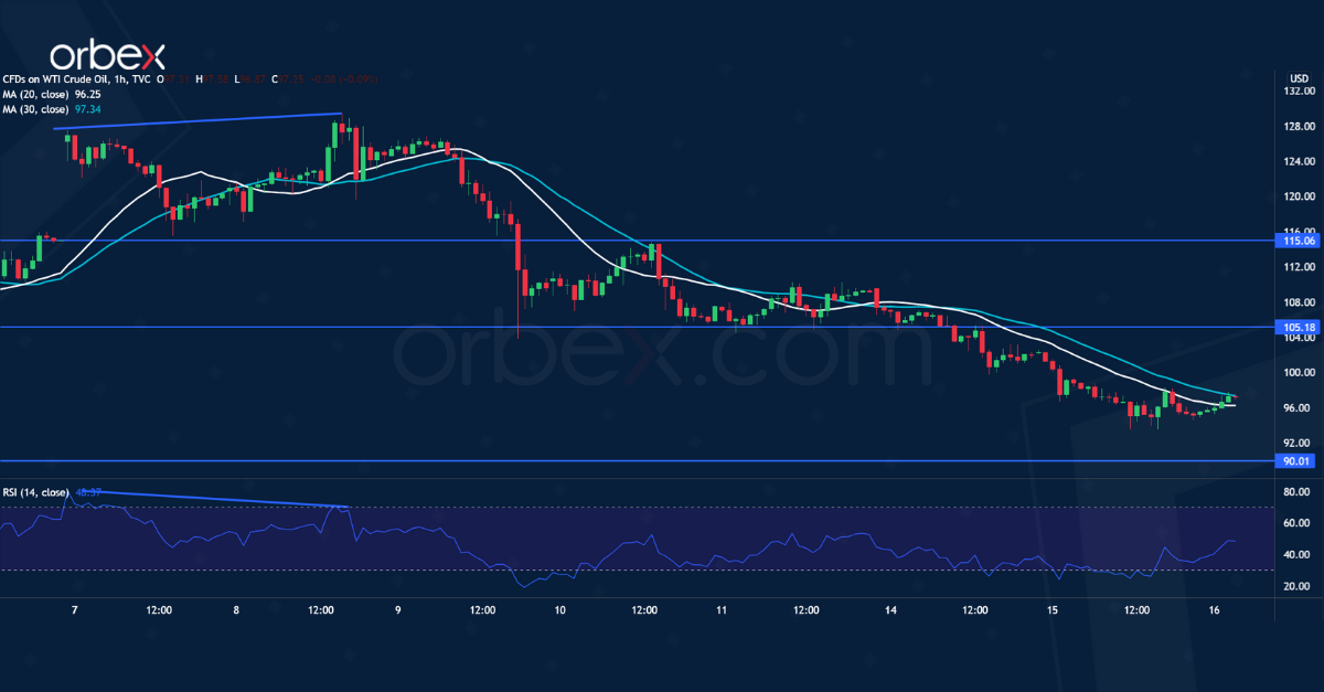 Buyers continue to unwind their positions as the price slides back to its pre-war level. The psychological level of 90.00 is an important support on the daily chart. An oversold RSI may attract buying interest in this demand zone. 105.00 is the first resistance before buyers could regain control.