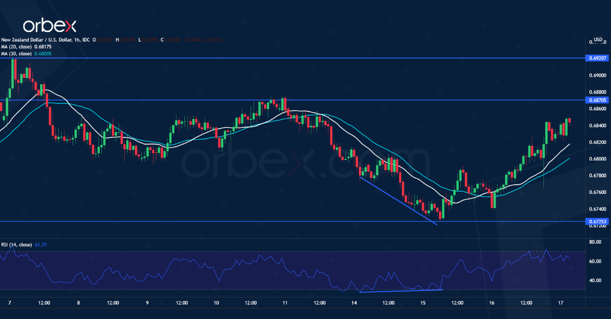 0.6870 is the last major resistance and a bullish breakout could propel the kiwi past the recent peak at 0.6920.