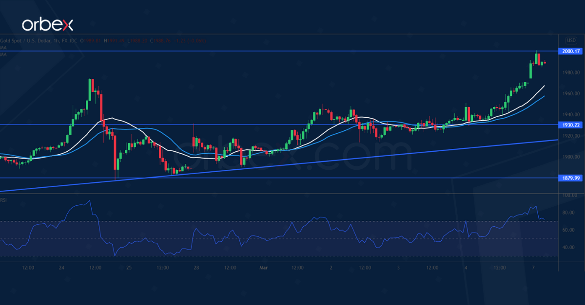 A break above the psychological level of 2000 would bring in more momentum traders. In fact, that would send the price to August 2020’s high at 2075. Between the trendline and 1930 there is a key demand zone.
