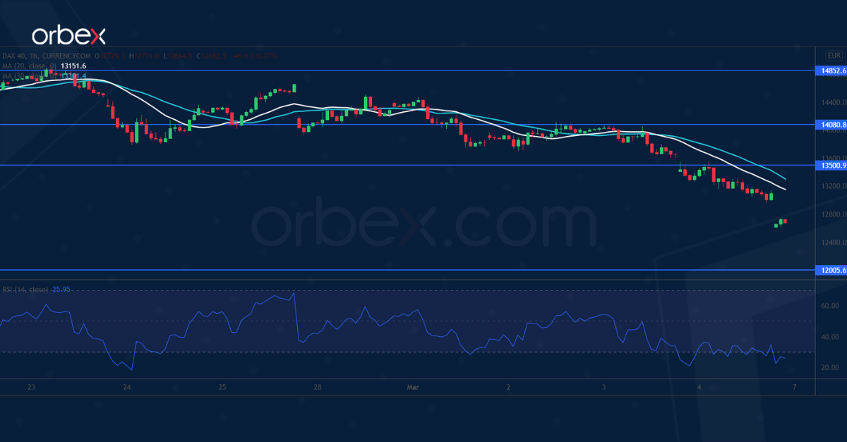 The Dax 40 plunges for fears of stagflation in the eurozone. The index has ventured further into the bearish territory after it broke below March 2021’s lows around 14000.