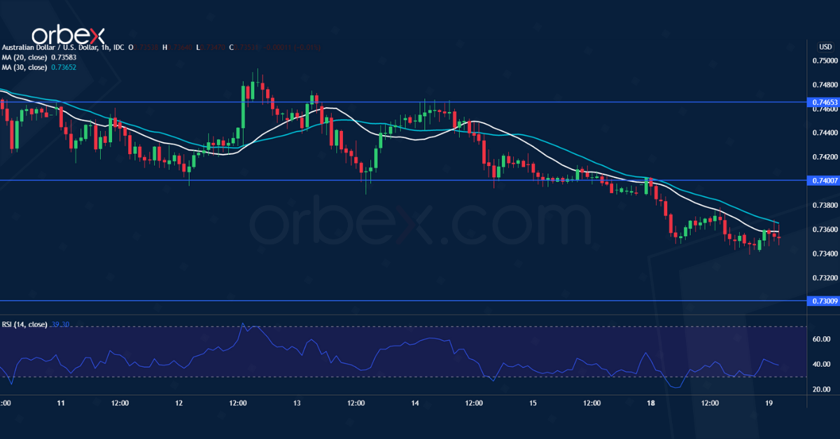 The Australian dollar remains under pressure after dovish RBA minutes. A fall below the demand zone between 0.7380 and 0.7400, which sits on the 30-day moving average, has put the bulls further on the defensive.