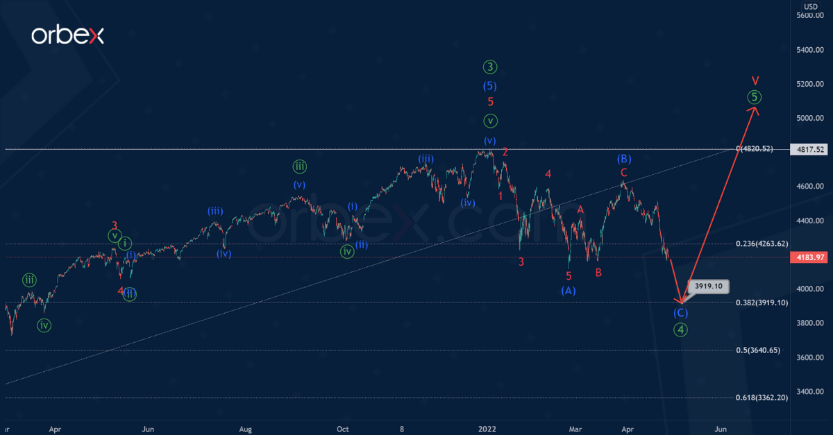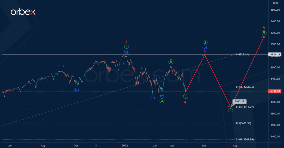 After the completion of the bullish impulse, market participants can expect a change in the stock price in the primary correction ④ towards 3913.22. At that level, the correction will be at 38.2% of the previous impulse.