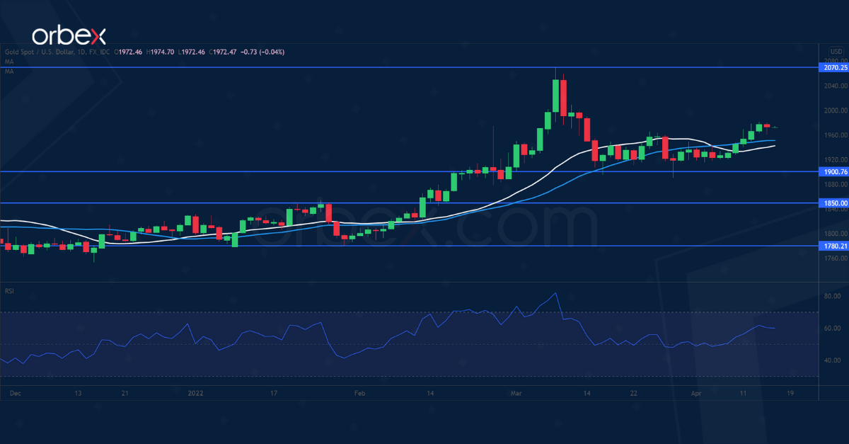 In the meantime, lockdowns in China put growth in the second-largest economy at risk, adding another layer of uncertainty to a turbulent time. Gold found buying interest near 1900 and is heading towards the recent high at 2070.