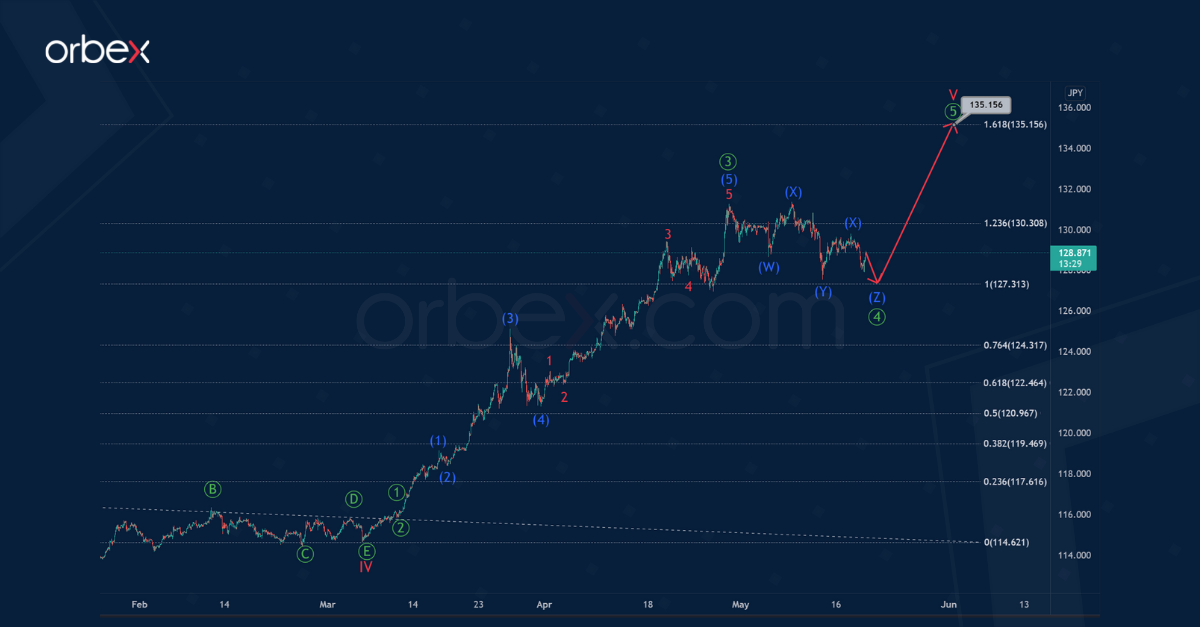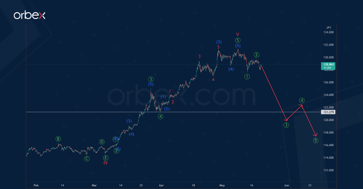 The internal structure of the USDJPY currency indicates the formation of a global impulse trend, which consists of cycle waves.