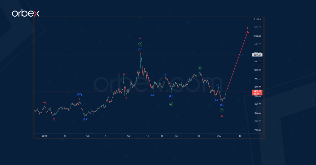 Gold is expected to form a global corrective trend, which takes the form of a cycle triple zigzag.