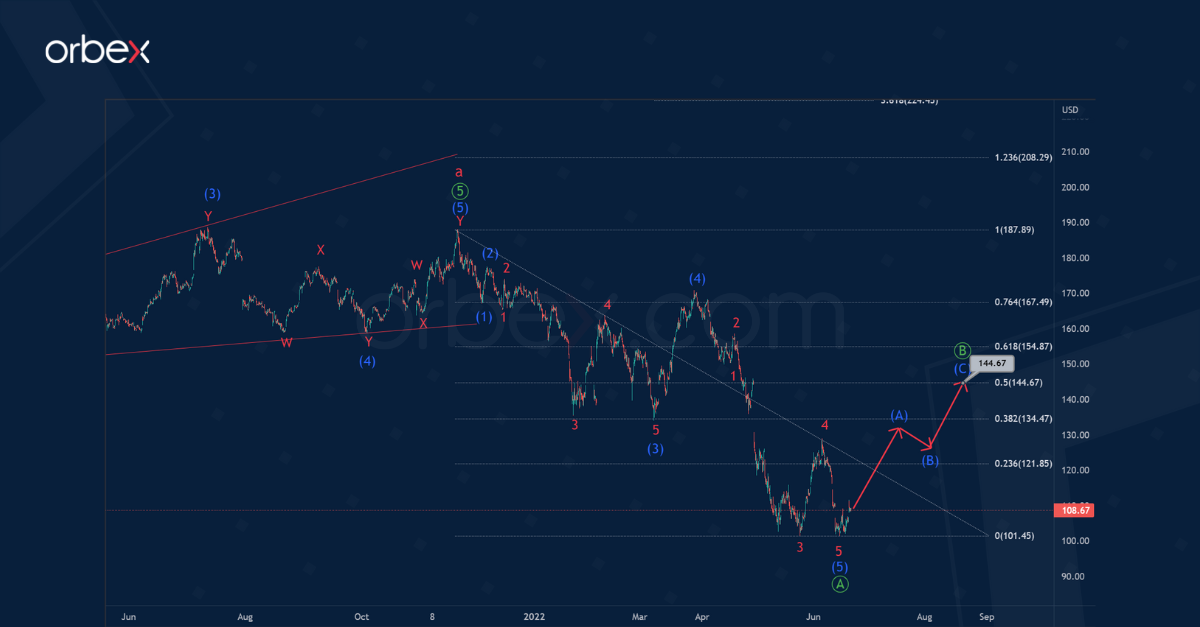 Soon we will see a continuation of the depreciation of prices in the final intermediate wave (5). This could end the primary impulse wave Ⓐ near 100.26. At that level, wave (5) will be at 161.8% of the previous impulse (3).
