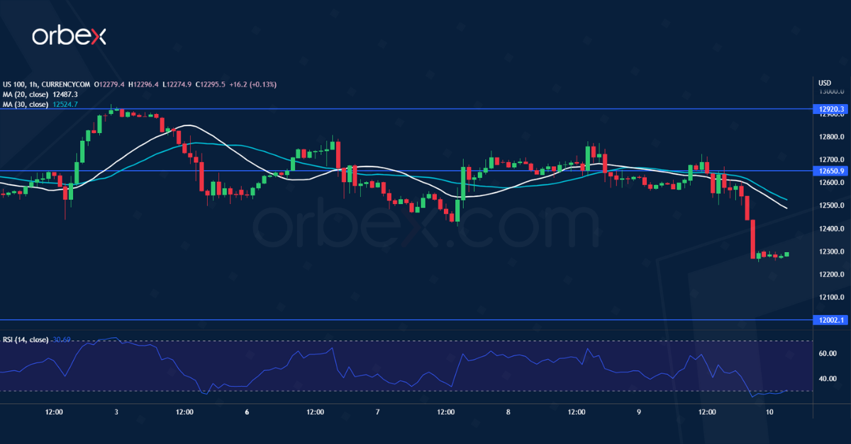 The Nasdaq 100 weakened after US jobless claims hit a five-month high. The index is struggling to hold onto its gains after it rose above the daily resistance at 12580. A drop below 12400, a former supply zone that has turned into a demand one, indicates a lack of commitment from the buy side. A combination of profit-taking and fresh selling may depress the price action to the psychological level of 12000. 12650 is the closest resistance and 12920 a major ceiling before the rebound could make a comeback.