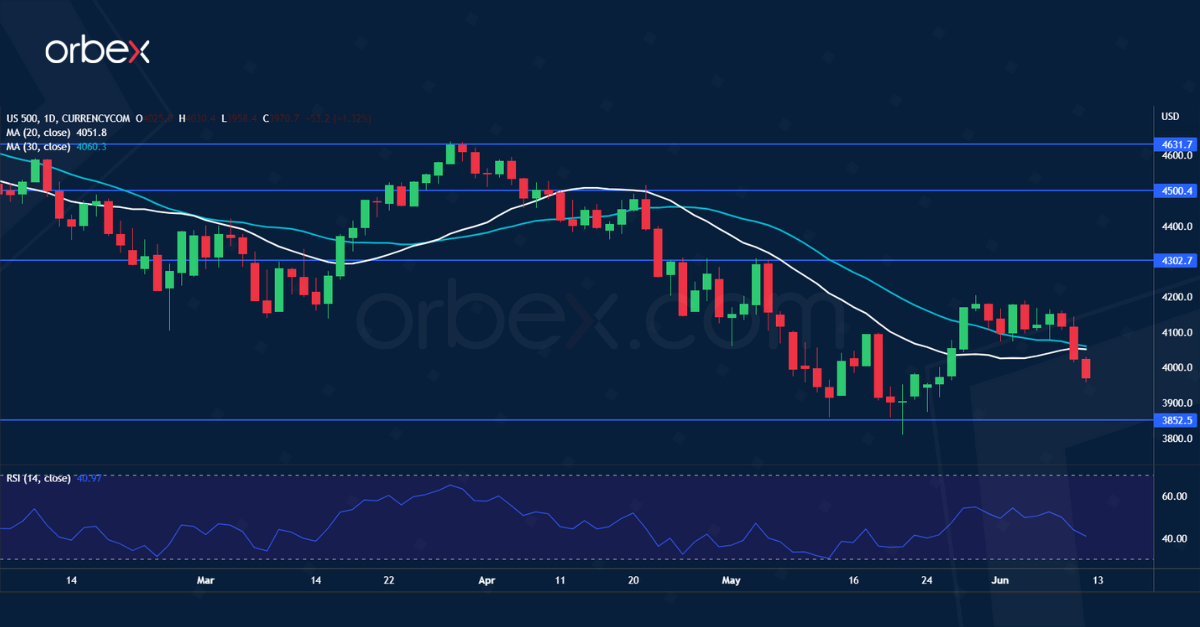 SPX 500 falls over high inflation