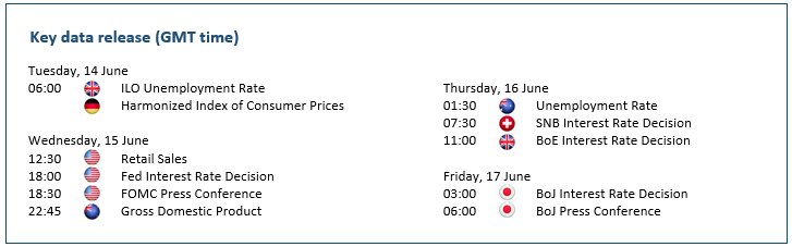 The US dollar strengthens as the Fed meets this week. Volatility is expected as both central banks are set to roll out their latest policy guidance. While the US Fed would reinforce the market’s positioning in regard to its aggressive tightening, surprise could come from the Alpine side. Swiss prices increased in May by their highest level in nearly 14 years. Economic fundamentals with a low unemployment rate could give the Swiss National Bank leeway to abandon negative interest rates. If the SNB decides to go along with the global trend of normalisation, the pair may face stiff selling pressure around 1.0050. 0.9570 is a fresh support.