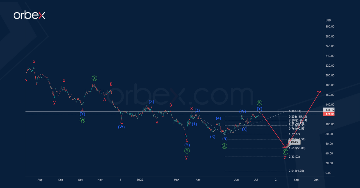 After the full completion of the cycle wave x, prices in wave z could begin to decline below the minimum of 73.39.