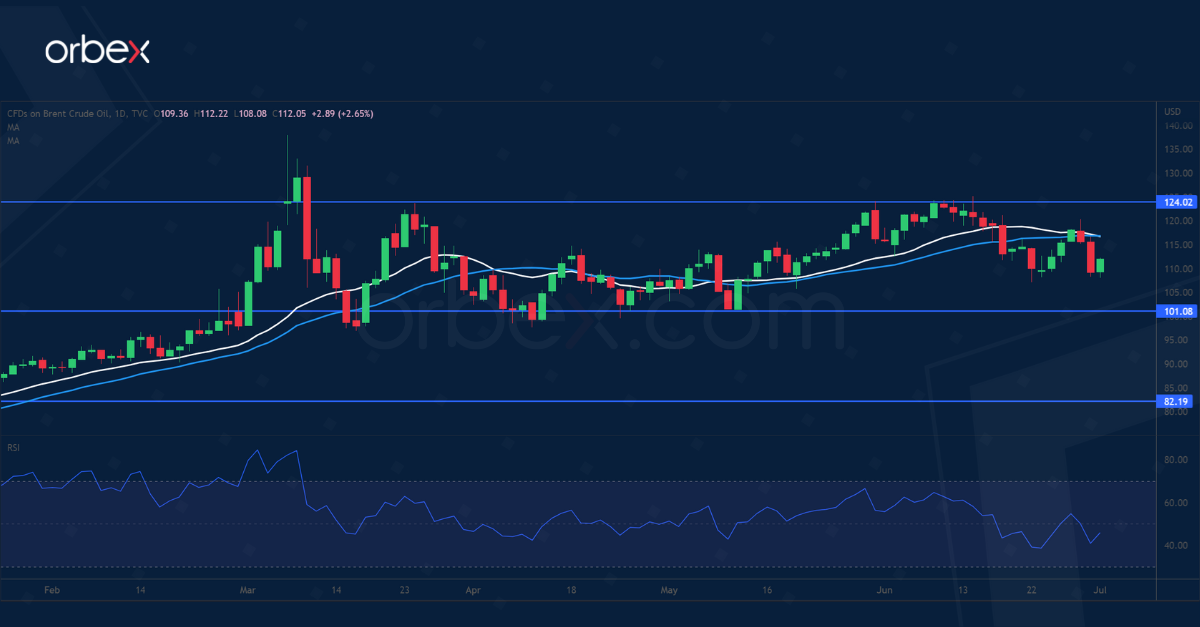 Oil prices consolidate as traders weigh tight supply against the prospect of weaker demand. OPEC+ has agreed to stick to its plan of raising output by 648,000 barrels per day this summer. However, there is uncertainty about the policy from September onwards. The downside risk is that the US and other major consuming countries manage to lobby for a substantial increase in production. In the meantime, Brent crude may find support from a pickup in demand with the holiday season kicking off and China gradually easing travel restrictions. 101.00 is a major support for the current rally and 124.00 the first hurdle ahead.