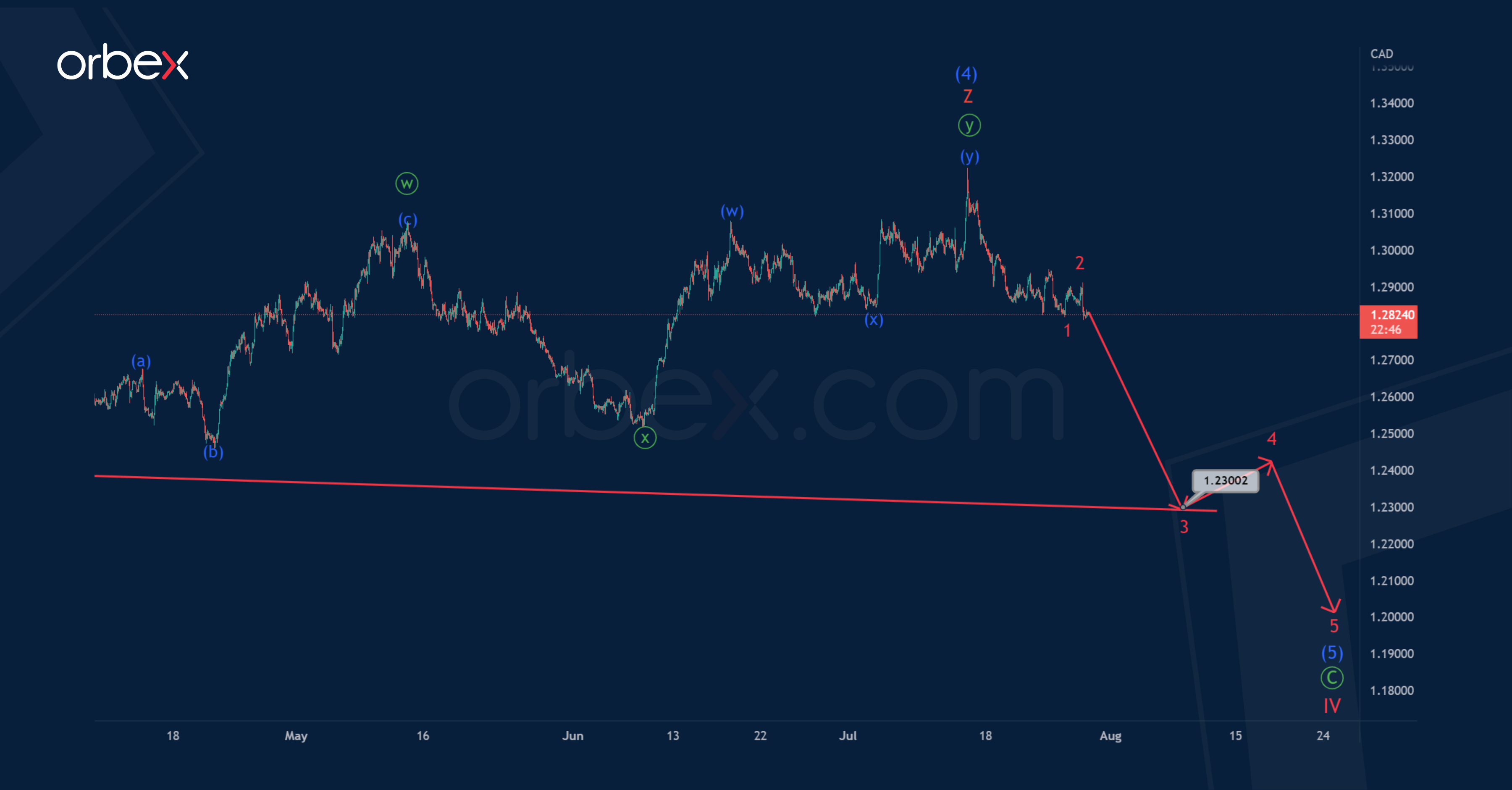 USDCAD seems to be forming a long-term correction wave (4) of the intermediate degree. This is part of the global downward impulse Ⓒ of the primary degree.