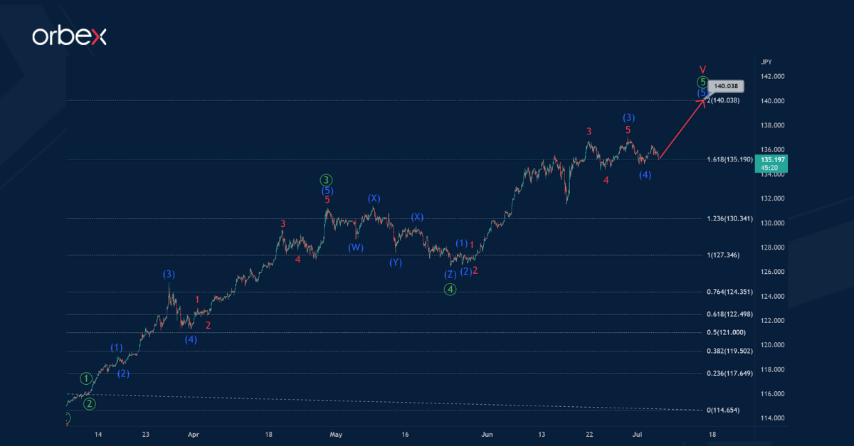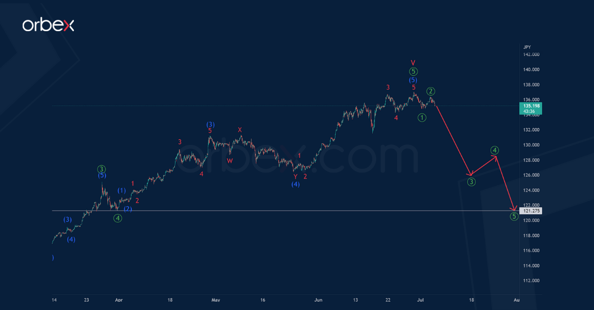 Currently, we could expect the construction of the primary fifth wave. This takes the form of an intermediate impulse. The price in the final primary wave ⑤ could rise to 140.03.