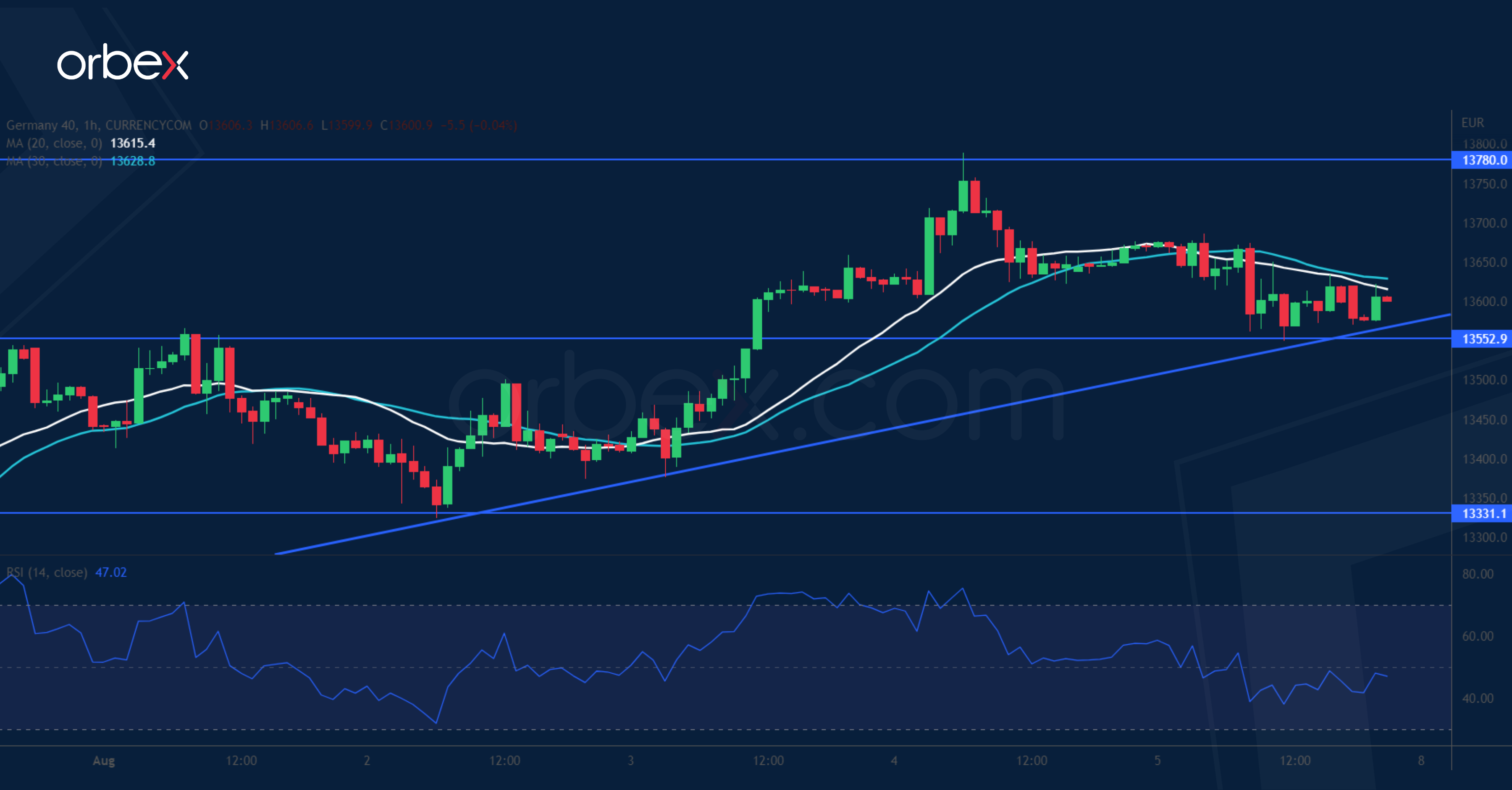 GER 40 tests rising trendline