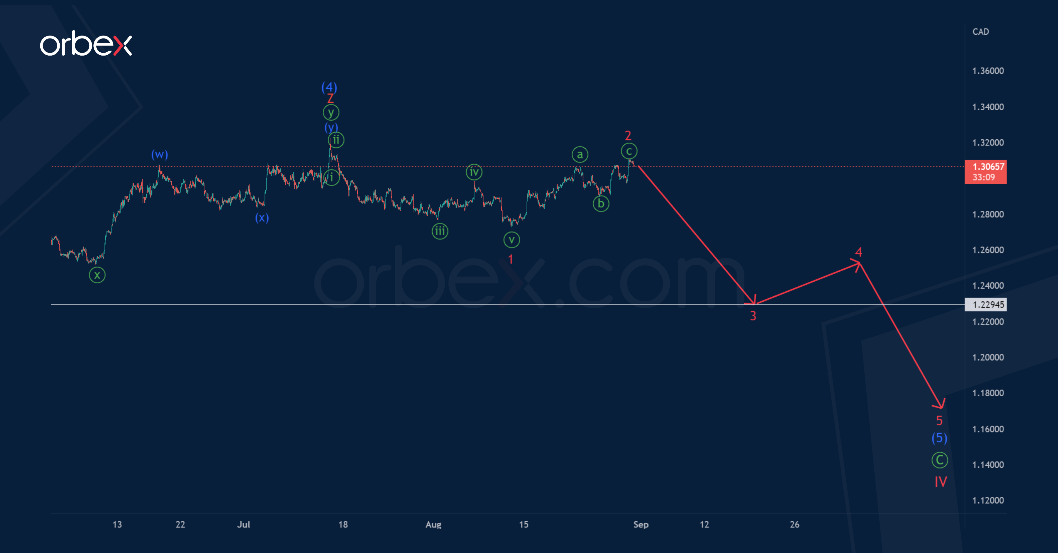 The current USDCAD timeframe shows the internal structure of the long-term correction wave (4) of the intermediate degree. This is part of the global downward impulse Ⓒ of the primary degree.