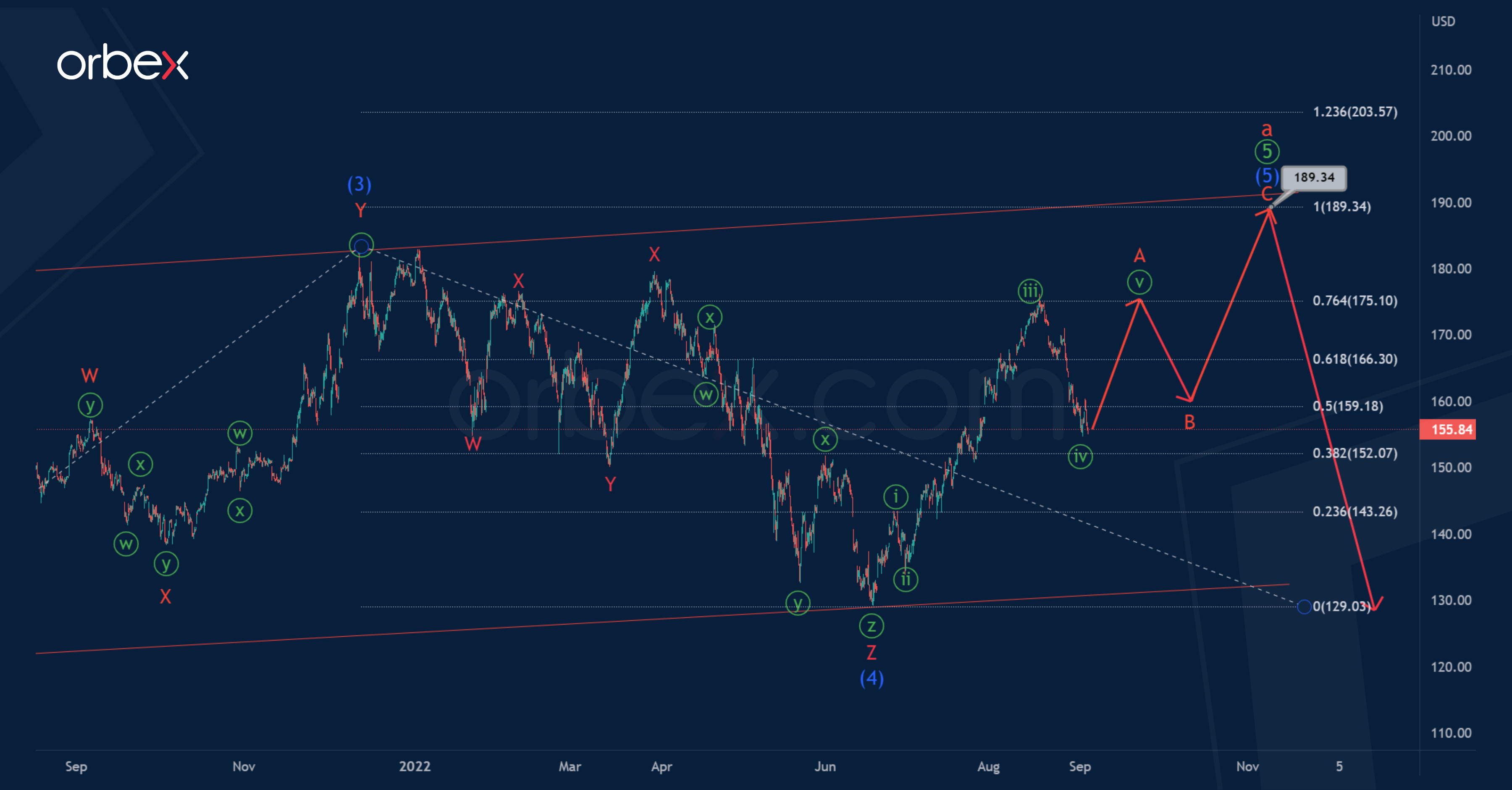 It is possible that prices in wave (5) will go to 189.34. At that level, wave (5) will be equal to wave (3).
