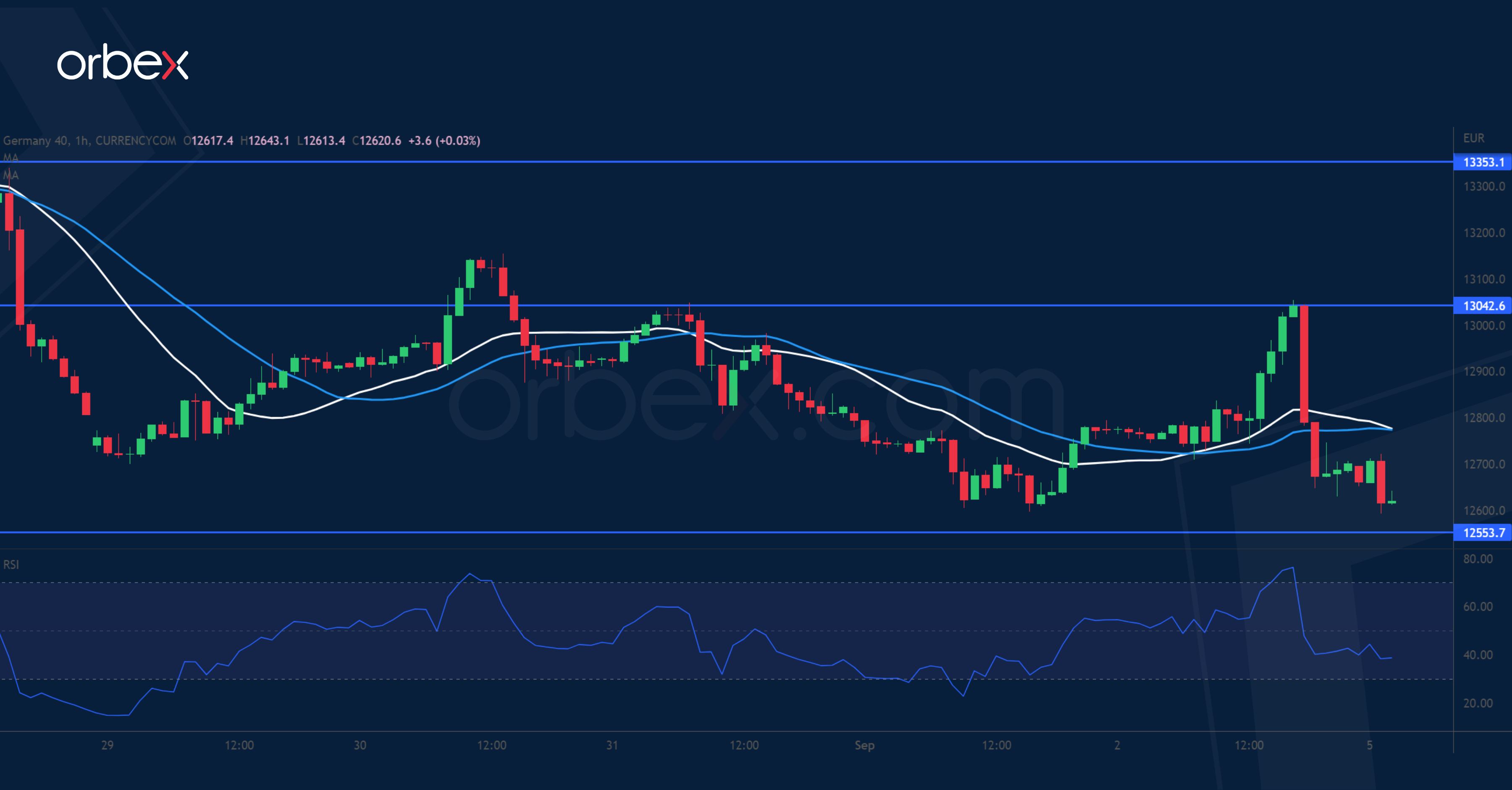 Equities remain under pressure as investors brace for more aggressive tightening by central banks. A bearish MA cross on the daily chart suggests that sentiment has shifted to the cautious side and the selling pressure might intensify. On the hourly chart, the index found support at the origin of the rally back in mid-July at 12550, but 13040 has proven to be a tough level to crack. The whipsaws could direct the Dax 40 back to the double bottom near 12420 which is the level that separates a recovery from a bearish continuation.