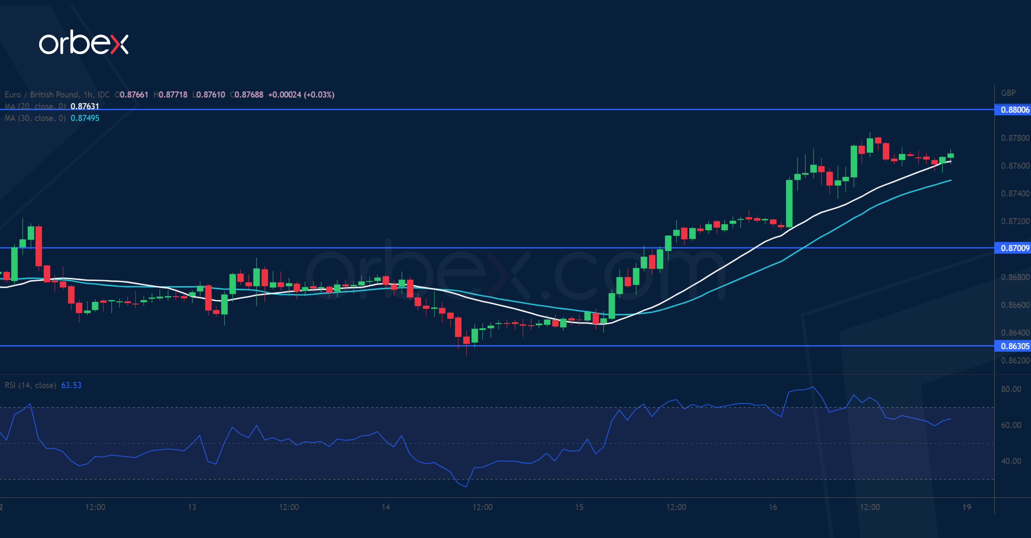 The pound tumbles as the UK’s August retail data disappoint. The buying pressure has been building up under June’s peak at 0.8720. The breakout prompted the last sellers to cover. As the euro’s rally gains momentum, this could open the door for a sustained climb towards 0.8900, which is a supply area from January 2021’s sell-off. 0.8800 is the intermediate resistance ahead. The RSI’s overbought situation could temporarily trim the buying and 0.8700 would be the first support in case the euro takes a breather.