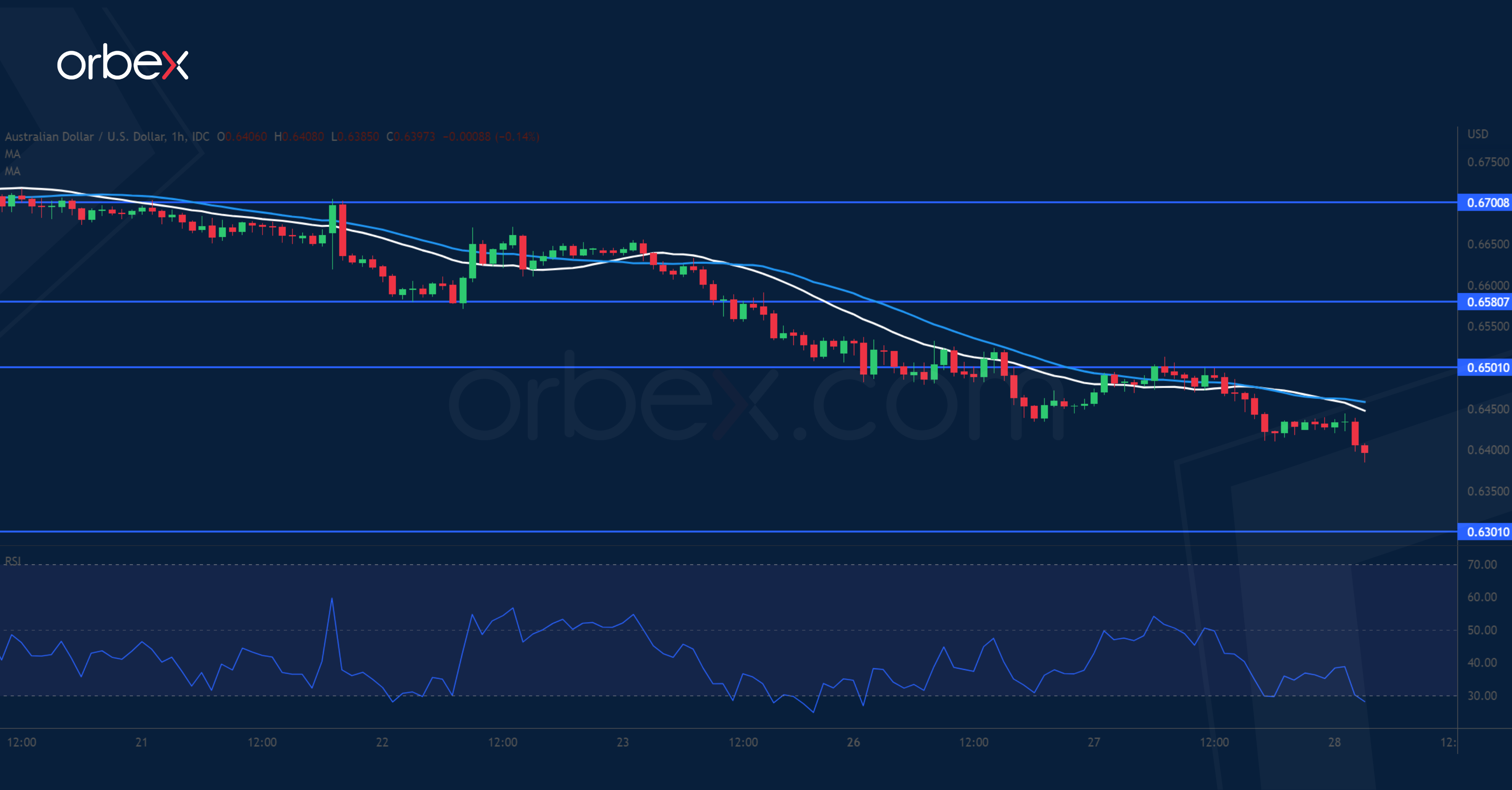 The Australian dollar falls as risk appetite remains subdued across assets. The pair went into a free fall after it broke last summer’s lows near 0.6700. The bearish mood still prevails and may continue to attract trend followers to depress the price action. 0.6300 is the next level to see whether the buy side could make its way back. The RSI’s oversold condition might cause a bounce and 0.6500 would be the first obstacle. The support-turned-resistance 0.6700 on the 20-day moving average could offer strong downward pressure.