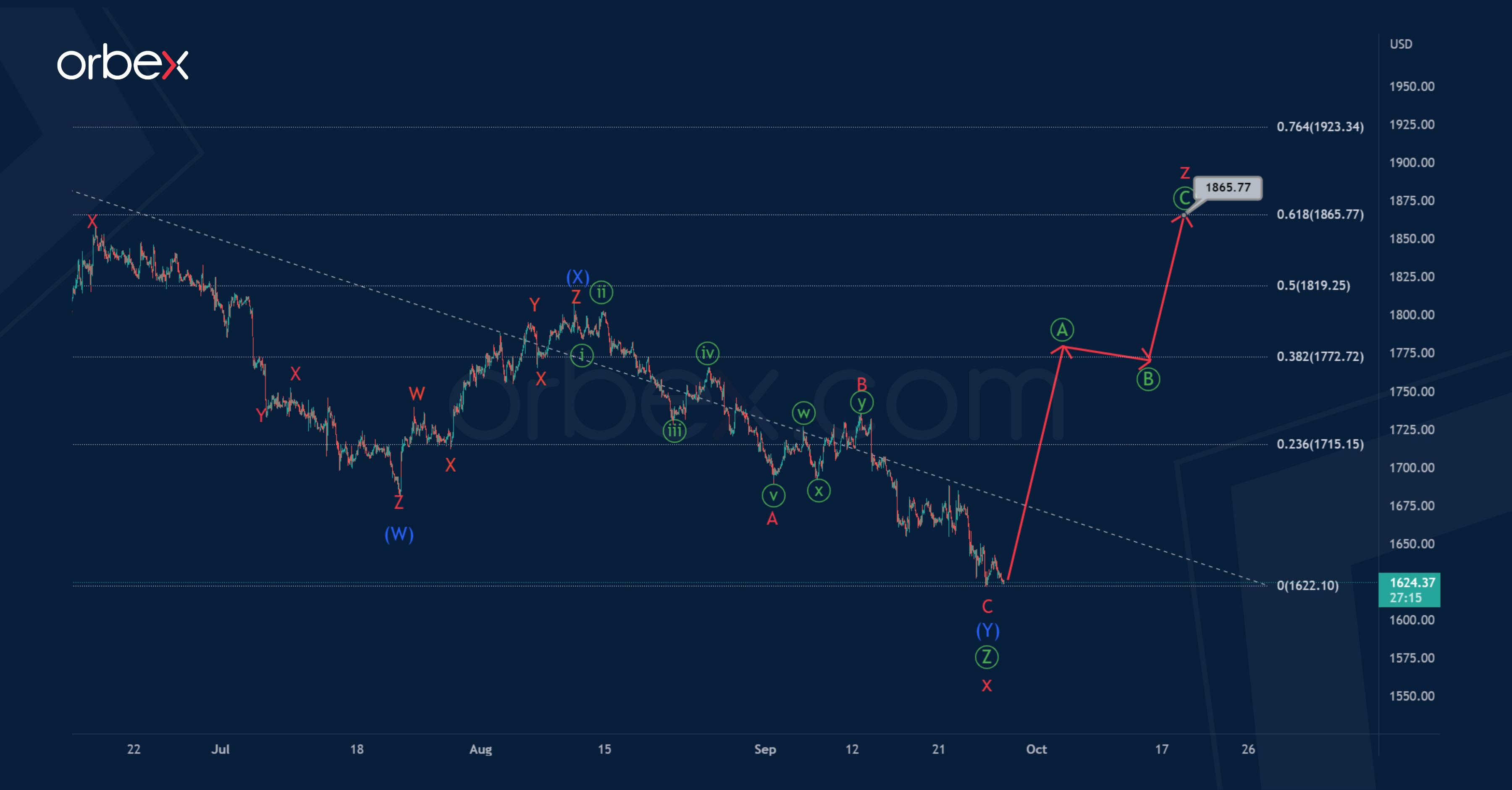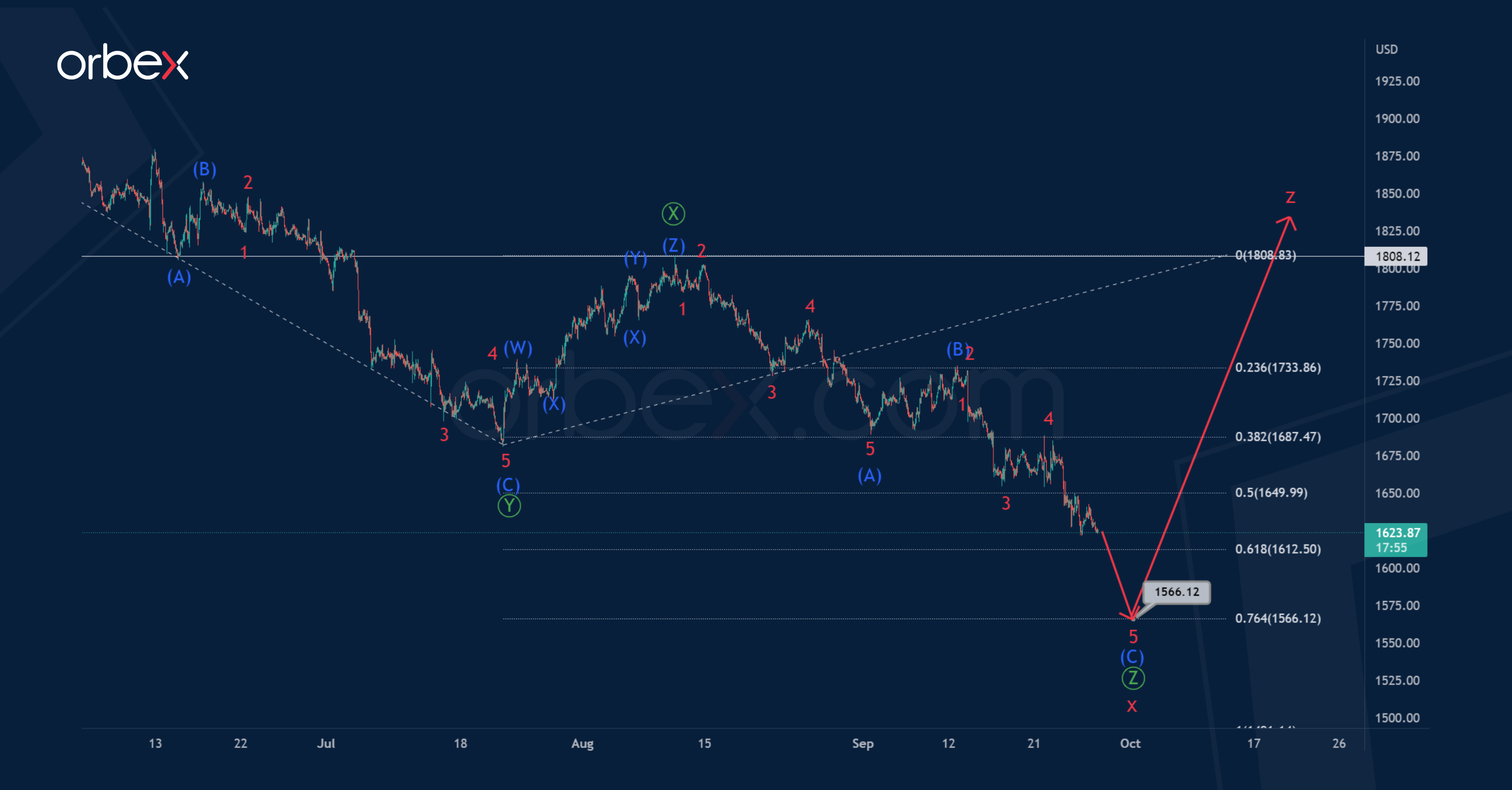 The price of gold in the wave z could rise to 1865.77. At that level, it will be at 61.8% of previous actionary wave y.