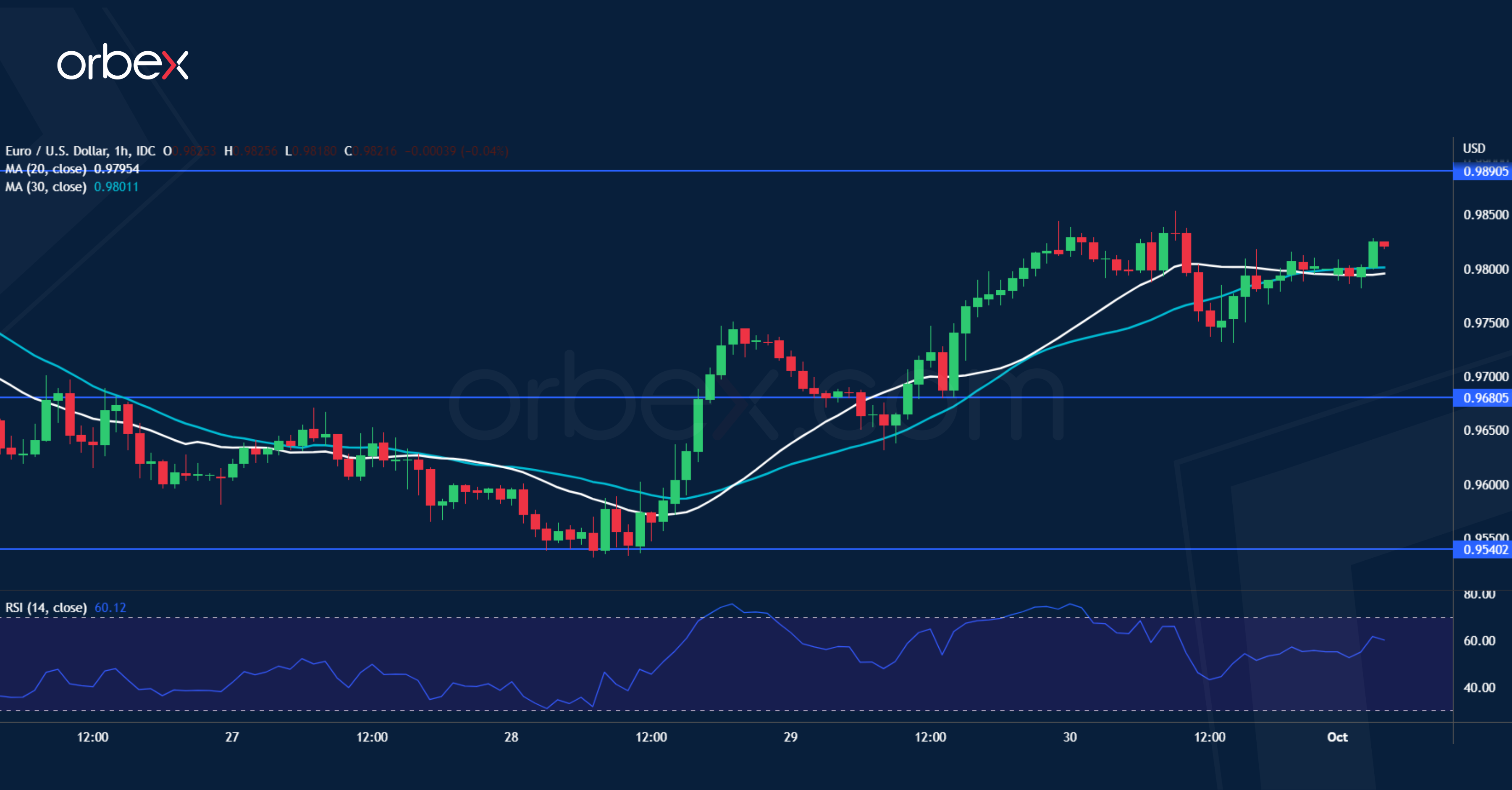 Test your strategy on how the euro will fare with Orbex - Open your account now.