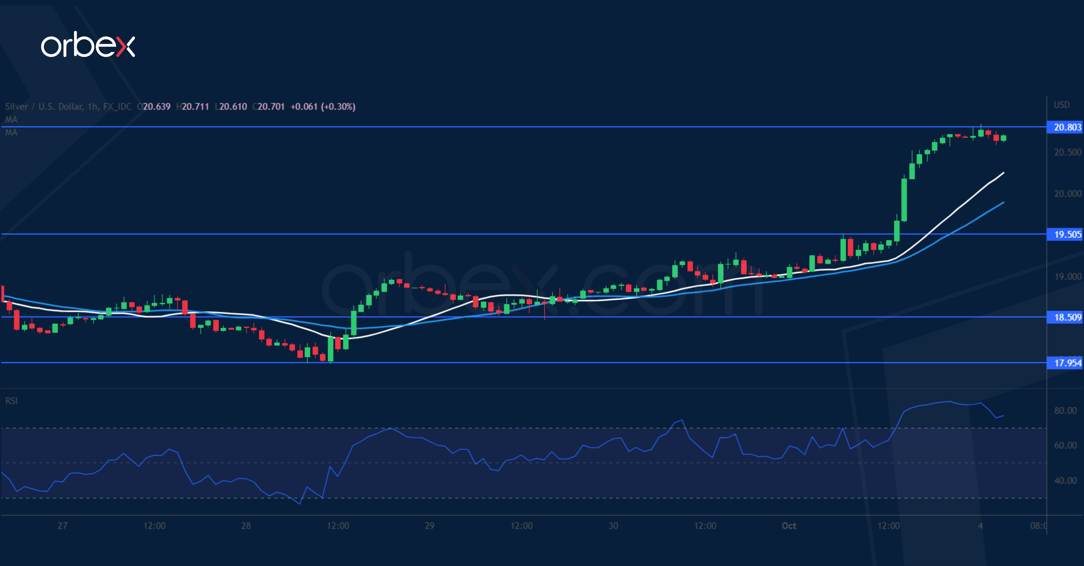 Silver surged after weaker-than-expected US manufacturing data sent Treasury yields lower. A break above 19.00 has prompted short-term sellers to cover their bets, easing the downward pressure. Then a pop above the psychological level of 20.00 attracted momentum buying. The precious metal is testing the daily resistance at 20.80, giving the bulls a chance to push back. A bullish breakout could pave the way for a reversal in the weeks to come. The resistance-turn-support at 19.50 is the first level for accumulation.