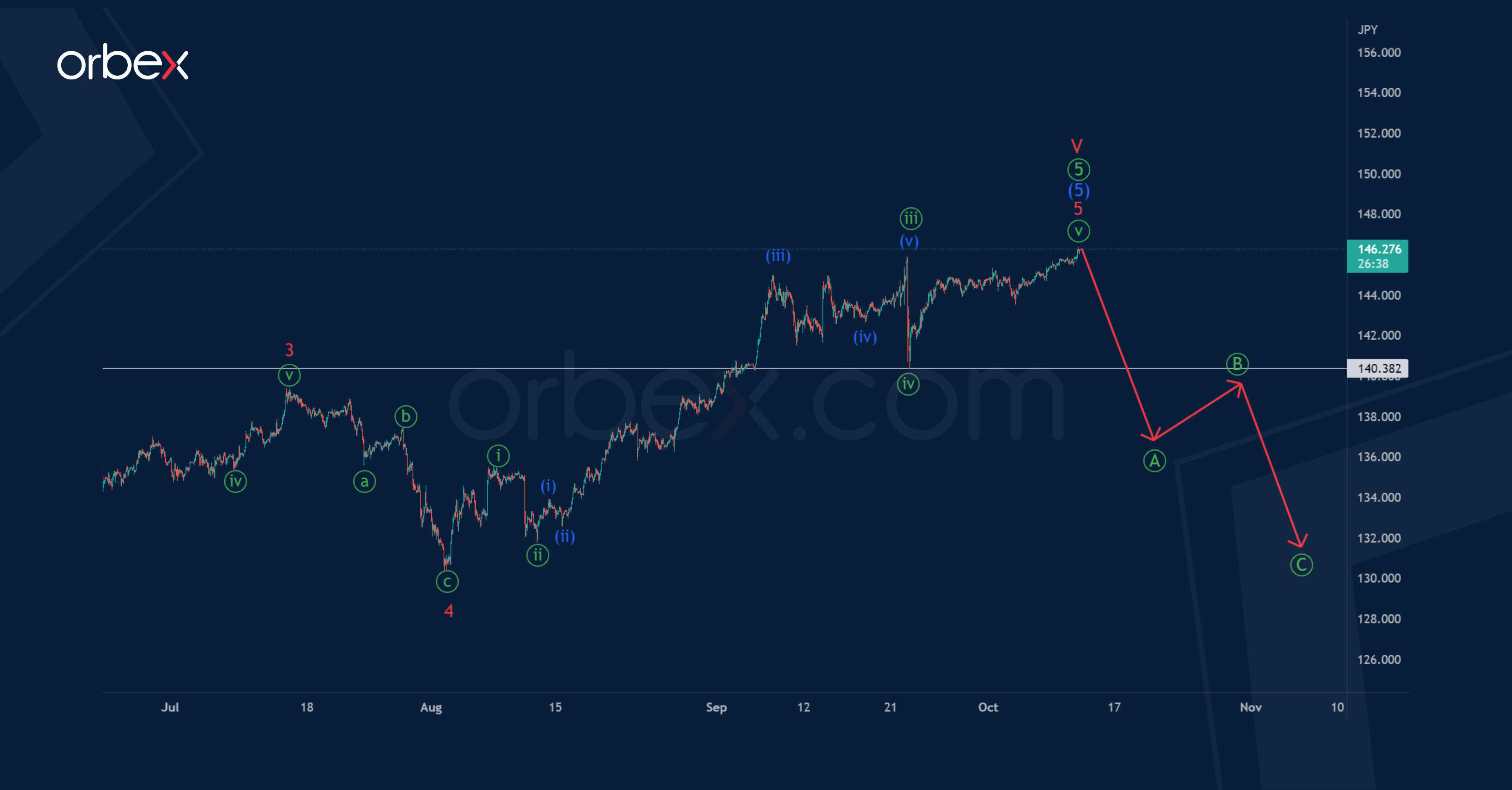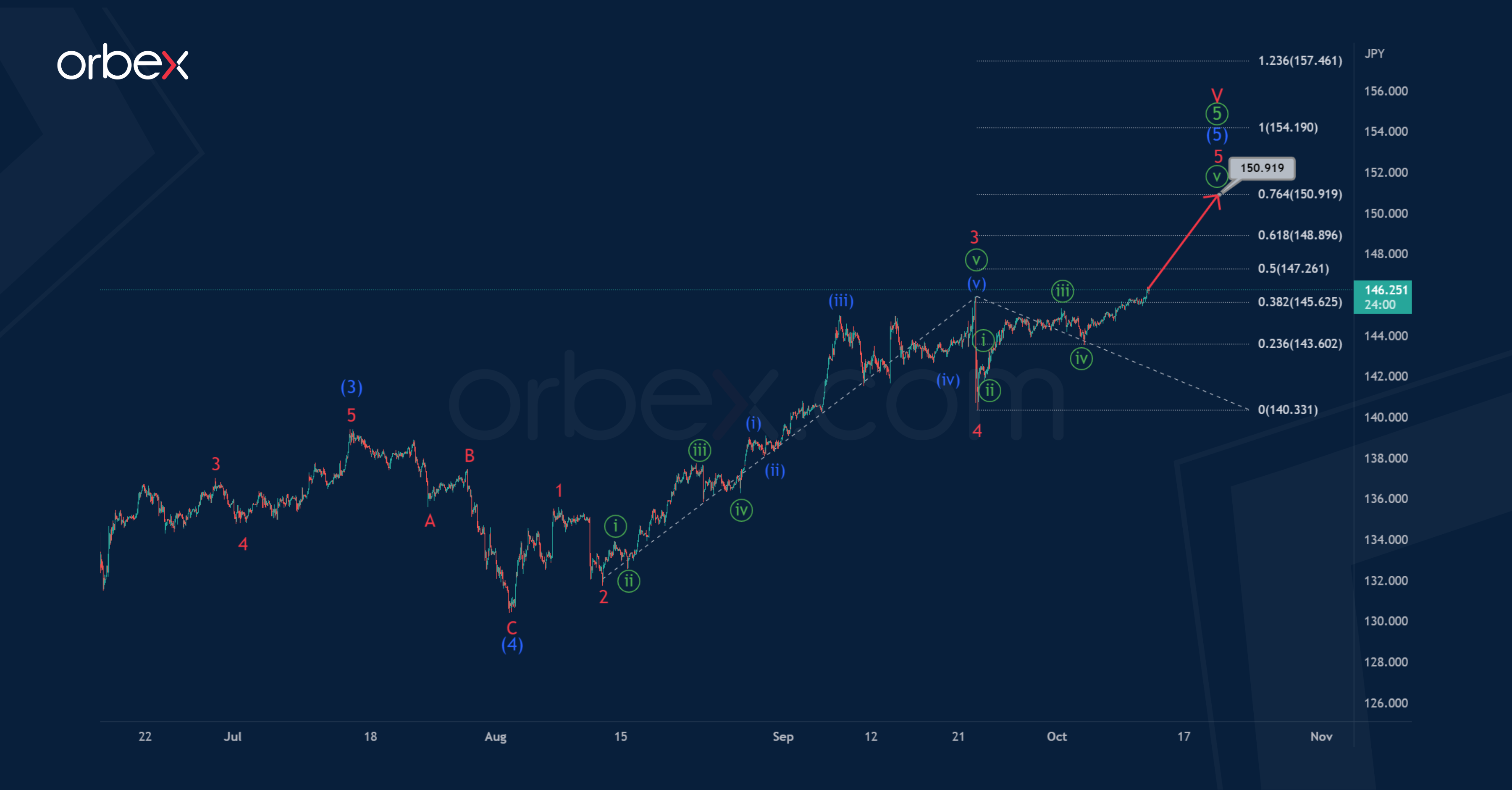 The current chart of the USDJPY pair shows the formation of a global impulse trend. In the last section of the chart, we see the construction of the final cycle wave V.