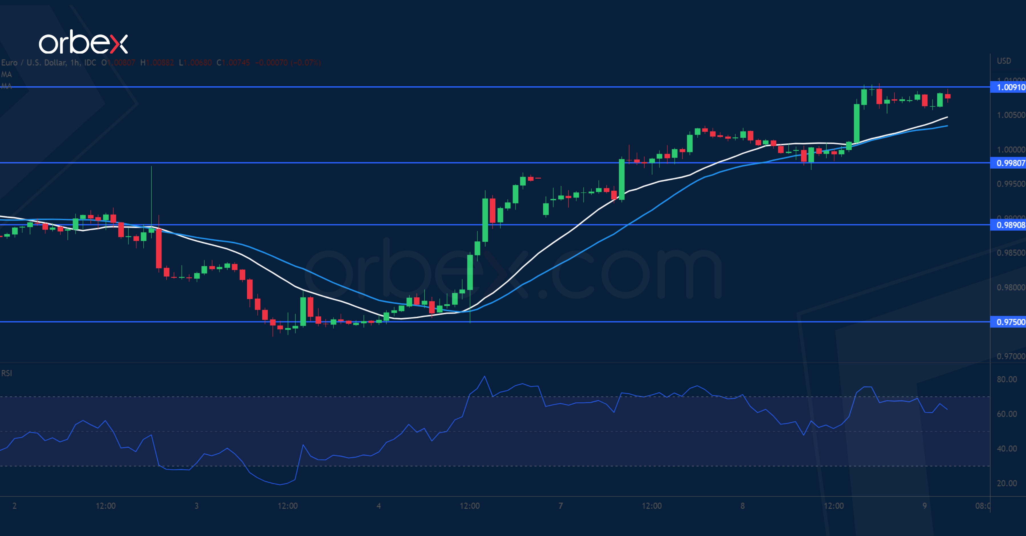 Test your strategy on how the euro will fare with Orbex - Open your account now.