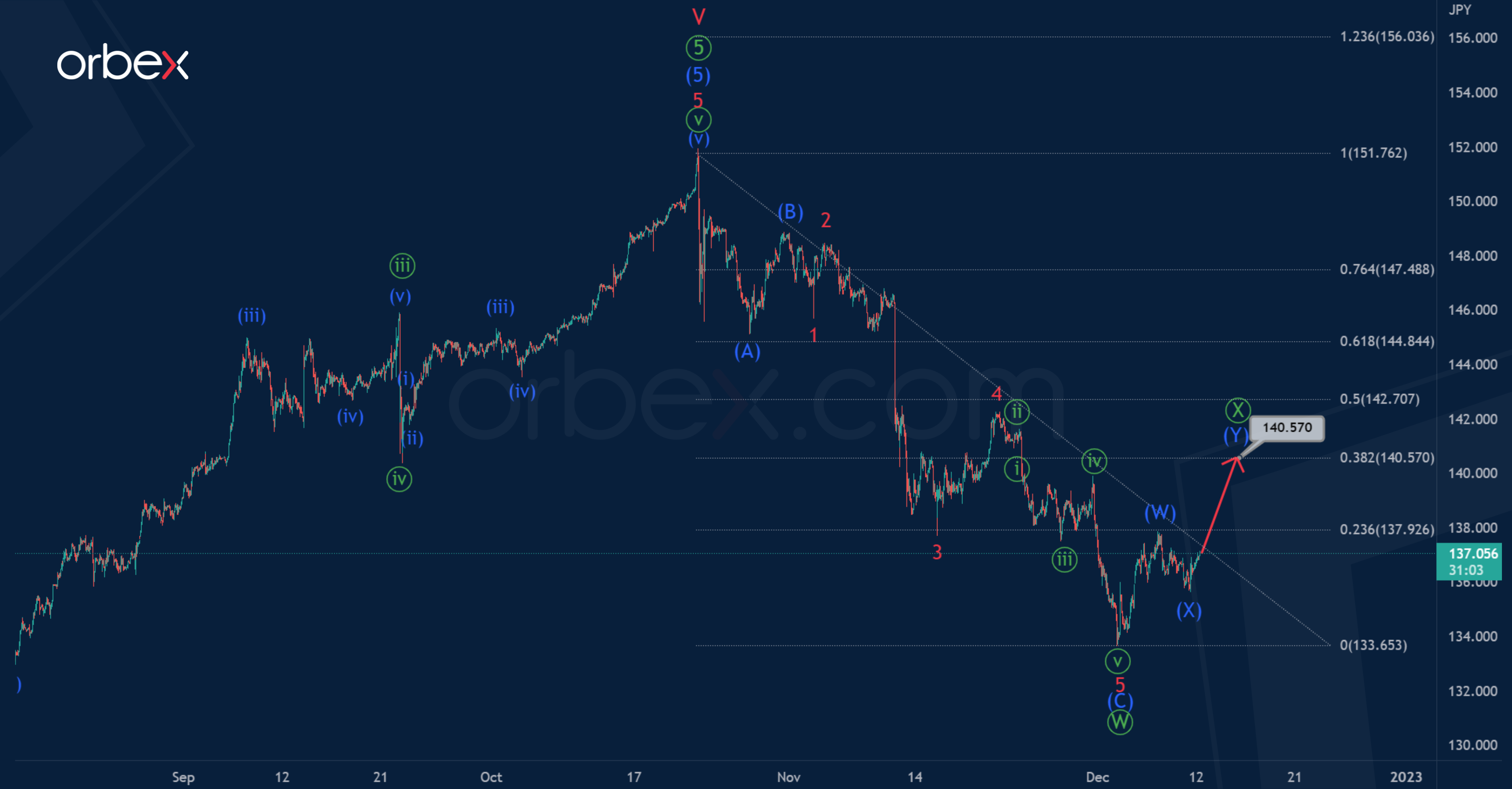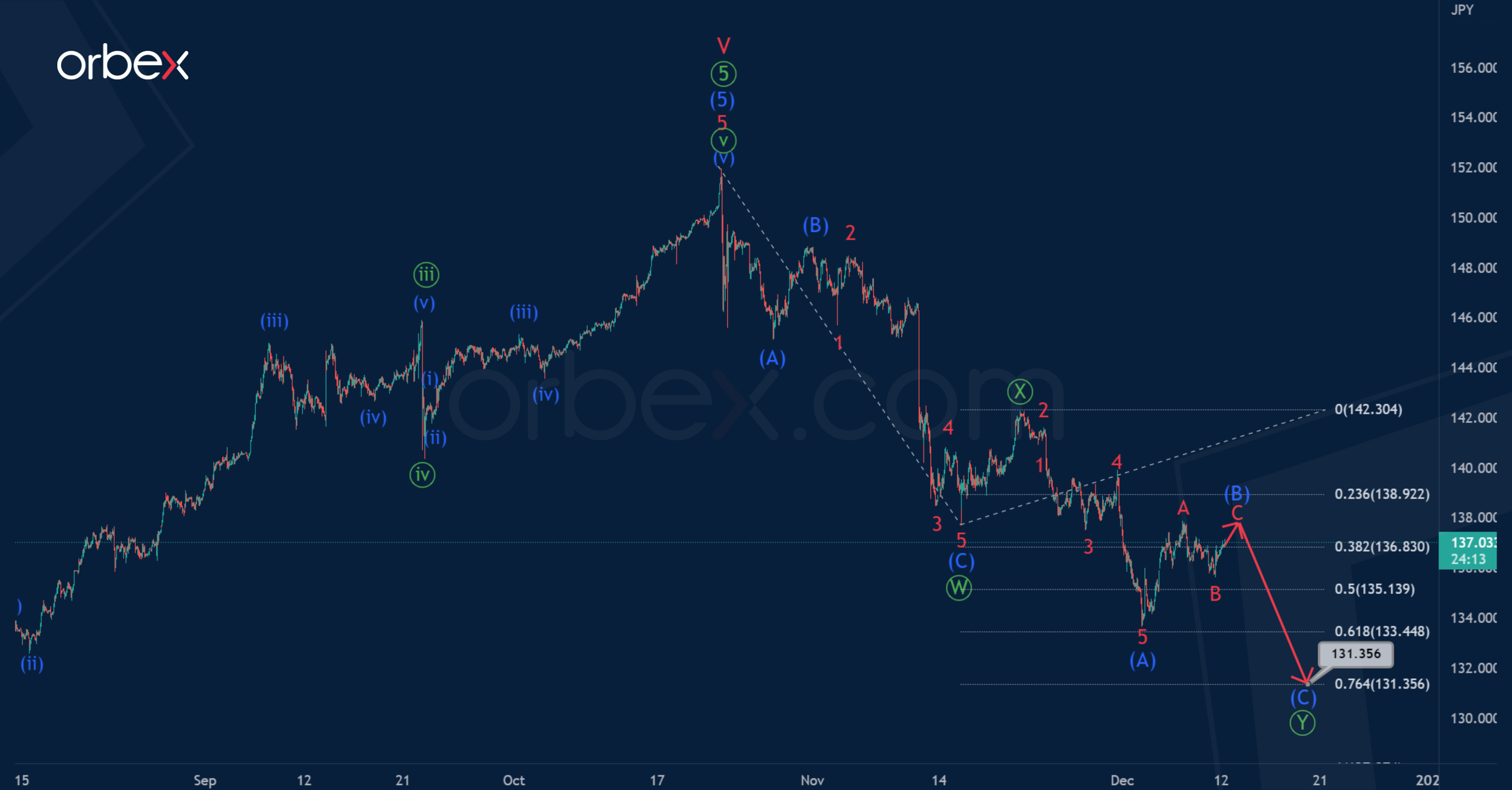 Perhaps the wave Ⓧ will have the form of a double zigzag (W)-(X)-(Y), as shown in the chart. In the near future, the price growth may continue in the sub-wave (Y) at 140.57.
