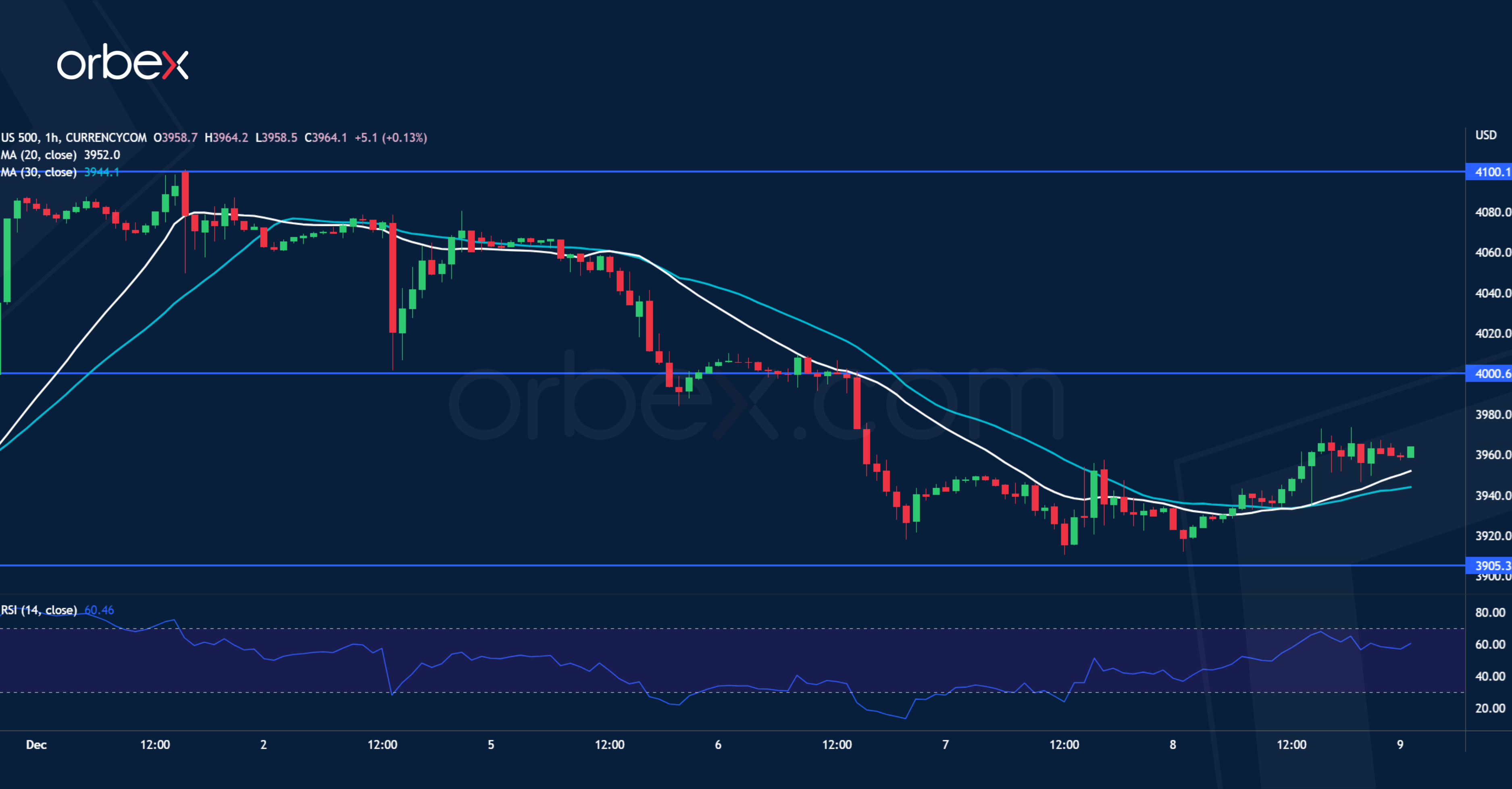 The S&P 500 edged higher after US jobless claims rose moderately last week . The index has struggled in the supply zone (4130) from last September. The tumble below the base of the previous bullish momentum at 3950 has thrown the bulls into disarray. This lack of follow-through might lead to a bearish reversal as the buy side may choose to bail out. Only a climb back above the psychological level of 4000 would attract more interest and signal a recovery. Below 3905, the bears would take over and press towards 3840.