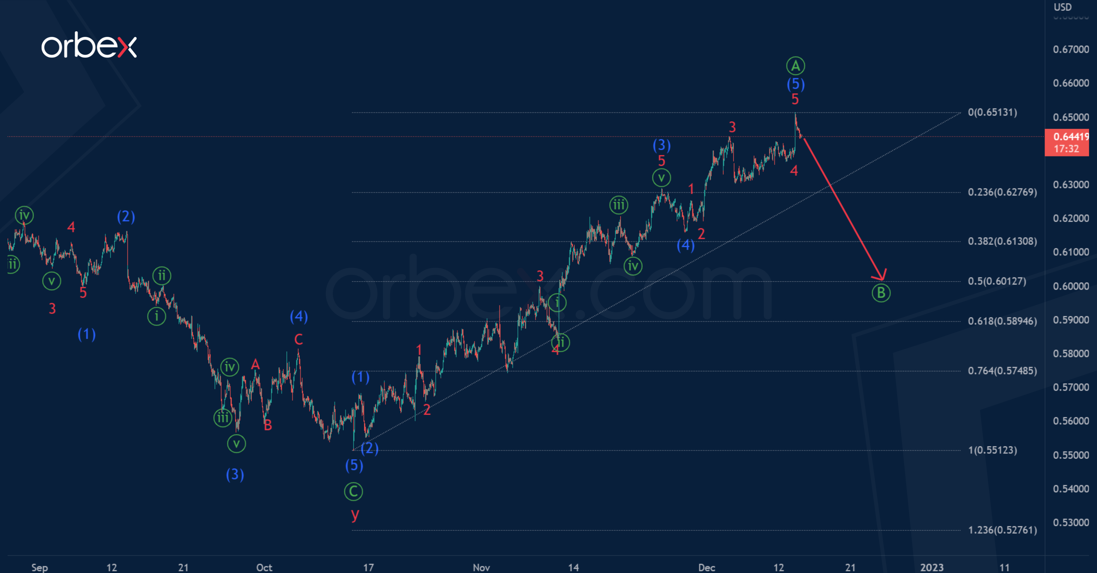 A closer look at the 1H timeframe shows that the NZDUSD market has already completed the formation of a cycle actionary wave y.
