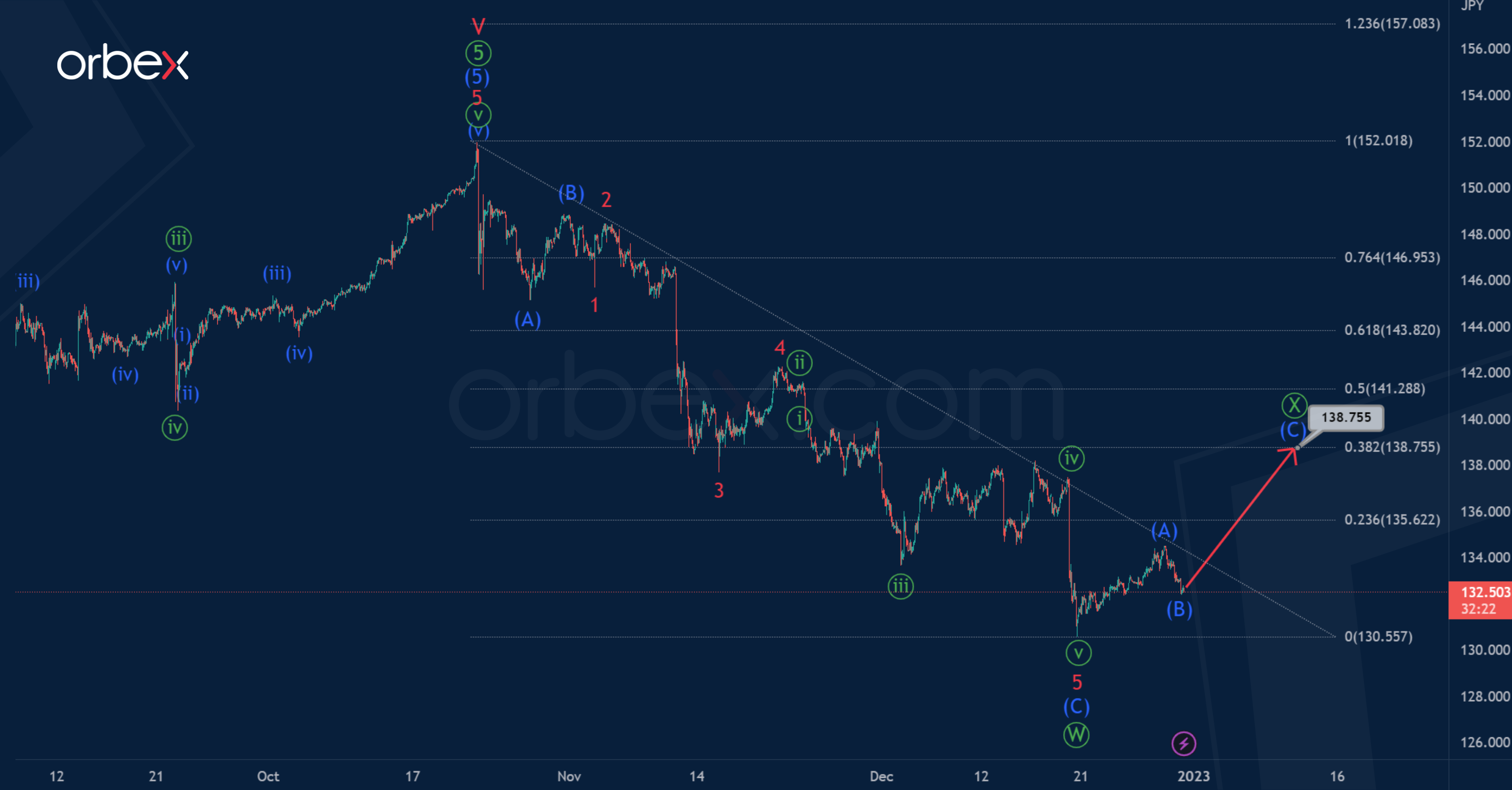 Perhaps the wave Ⓧ will have the form of a zigzag (A)-(B)-(C), as shown in the chart. In the near future, the price growth may continue in the sub-wave (C) to 138.75.