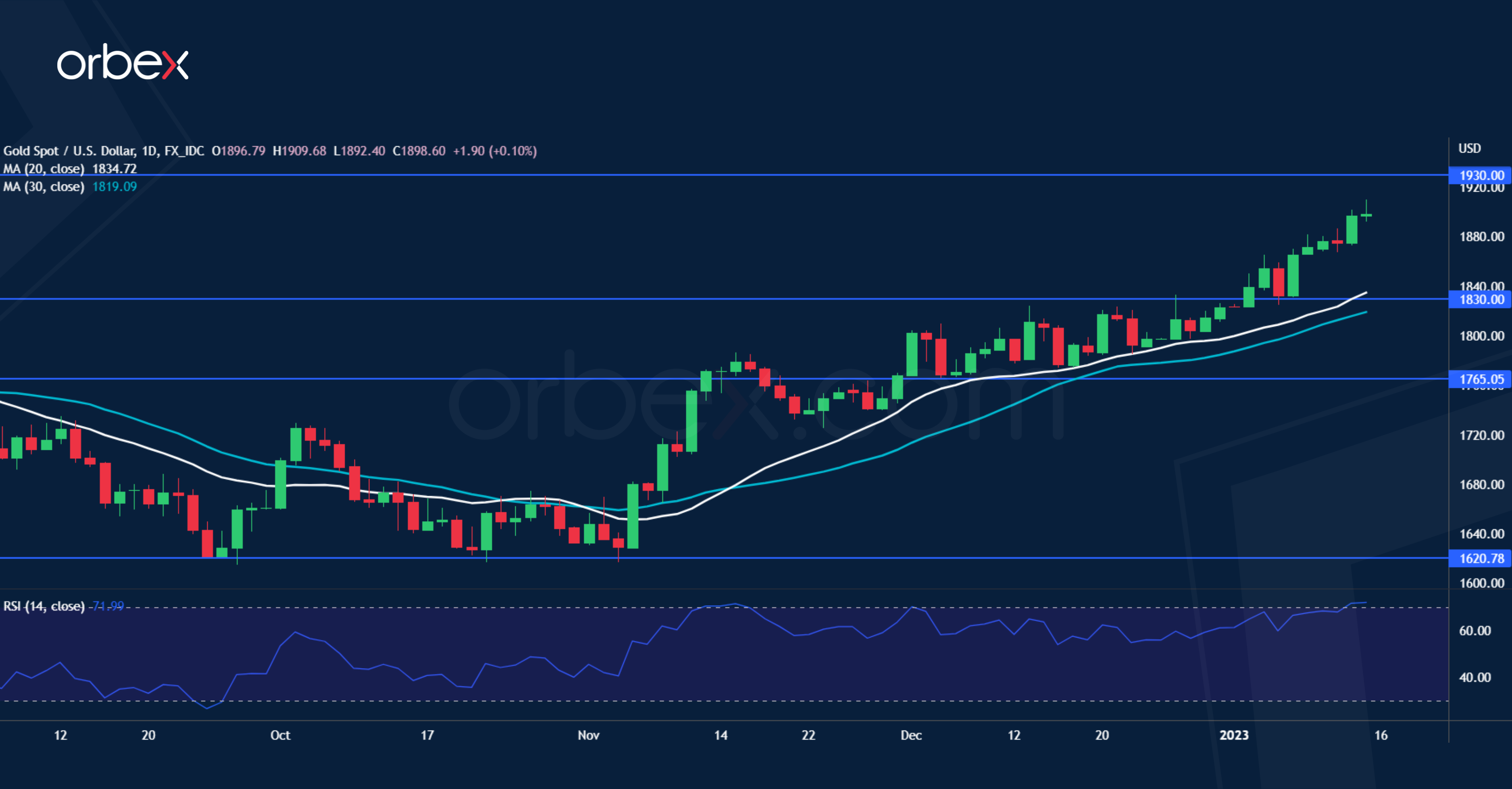 The Japanese yen extended gains as accelerating inflation may pressure the BoJ to act soon. One of the major themes of 2023 could be Japan finally normalising its monetary policy. Consumer prices have been rising steadily nationwide, with the latest CPI in Tokyo reaching 4%, above the central bank’s 2% target for seven months in a row.
