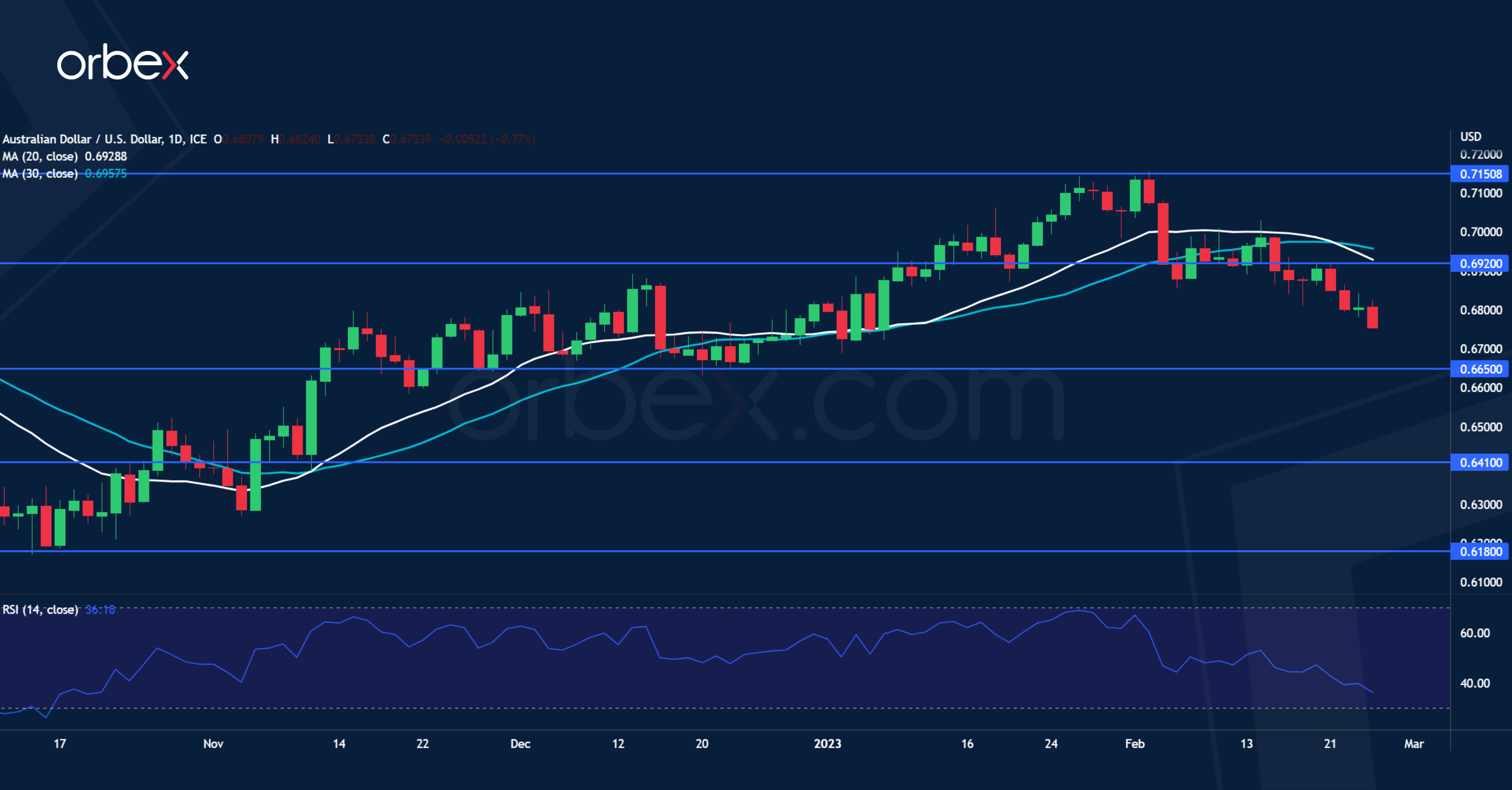 The Australian dollar weakens as the prospect of more tightening dents market sentiment. Wage growth has remained steady, and if the labour market does not loosen quickly enough, the RBA may push the peak rates much higher than the currently expected 4.1%. The central bank has already signalled more rate hikes to come but this hawkish pivot barely supports its currency. Rather, it means that the fight against inflation is far from over and restrictive conditions could stay for the foreseeable future. Subdued risk appetite may drive the higher beta aussie lower towards 0.6650 with 0.6920 as the first hurdle.