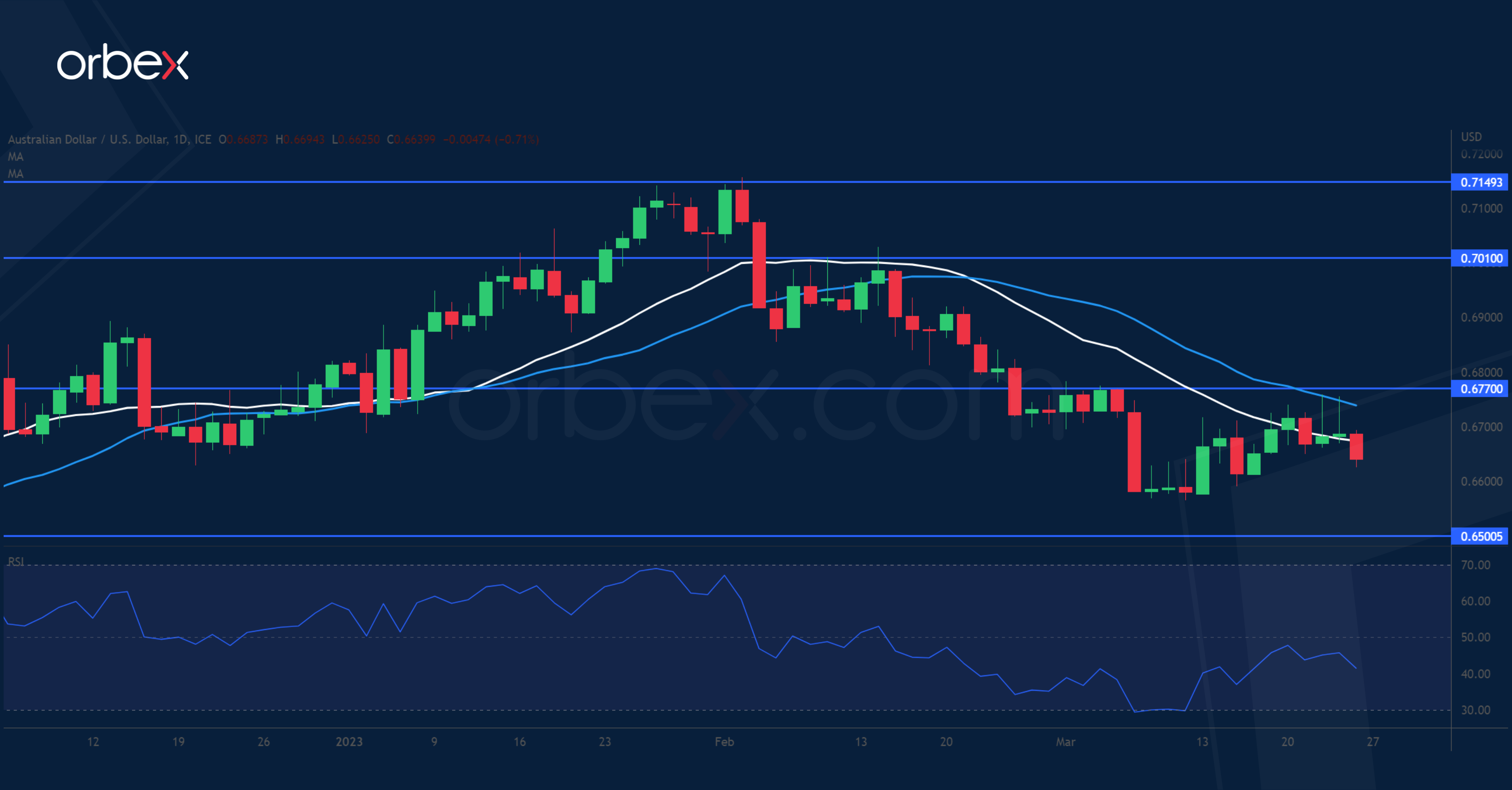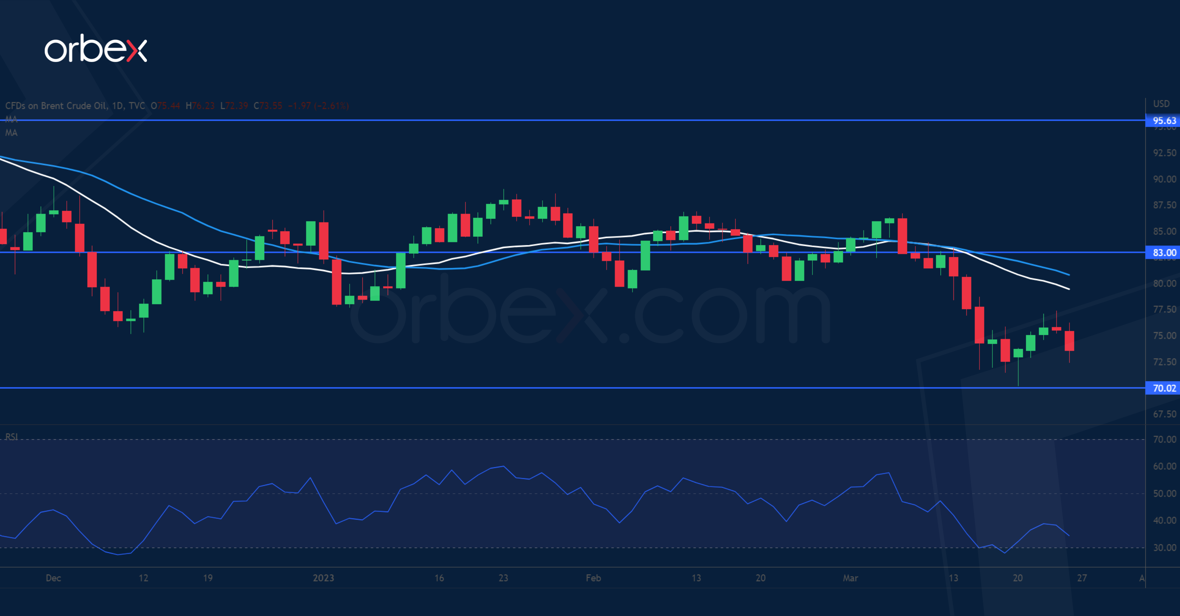 Brent crude staged a limited bounce as the outlook took a gloomy turn. Recent shocks in the financial sector have shattered the hope of a sustained recovery, sending the oil price to its 15-month low. A credit crunch, reminiscent of the 2008 financial crisis, is feared to be the trigger of the anticipated recession. Even a solid recovery in demand from China has failed to offset the downward trajectory, which shows how traders are wary of a much harder landing for the global economy. Meanwhile, the EIA report of a large increase in US stockpiles only exacerbates the imbalance. 70.00 is the current floor and 83.00 a fresh hurdle.