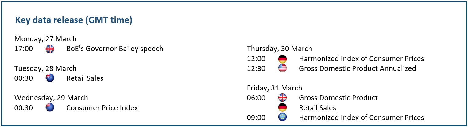 The Nasdaq 100 struggles over investors’ unease about the Fed’s policy outlook. While Powell reiterated the possibility of further increasing rates, market participants remain hopeful that future data would show that aggressive hikes have indeed left a mark on consumption. Until then, Treasury Secretary Janet Yellen’s reassurances to guarantee bank deposits amid the banking crisis would also give the Fed a free hand to focus on inflation, namely pushing the rate even higher if necessary and tempering rate cut speculations for this year. The index is testing the supply zone around 13160 and 11800 remains a key support.