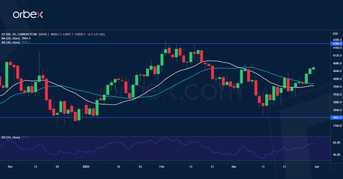 Bullion rallies as investors pour into safe bets in times of uncertainty. In spite of historical returns on cash with rising global interest rates, the zero-yield metal is on course for a new all-time high. The surge in safe haven demand means that gold is the ultimate gauge of wariness in the market. After the recent banking turbulence, nobody knows what is brewing behind the scene, and what else higher borrowing costs might break. ‘Better be safe than sorry’ seems to be the motto market players live by and the precious metal may continue to enjoy its ride. The price is heading towards March 2022’s high of 2070 with 1920 as support.