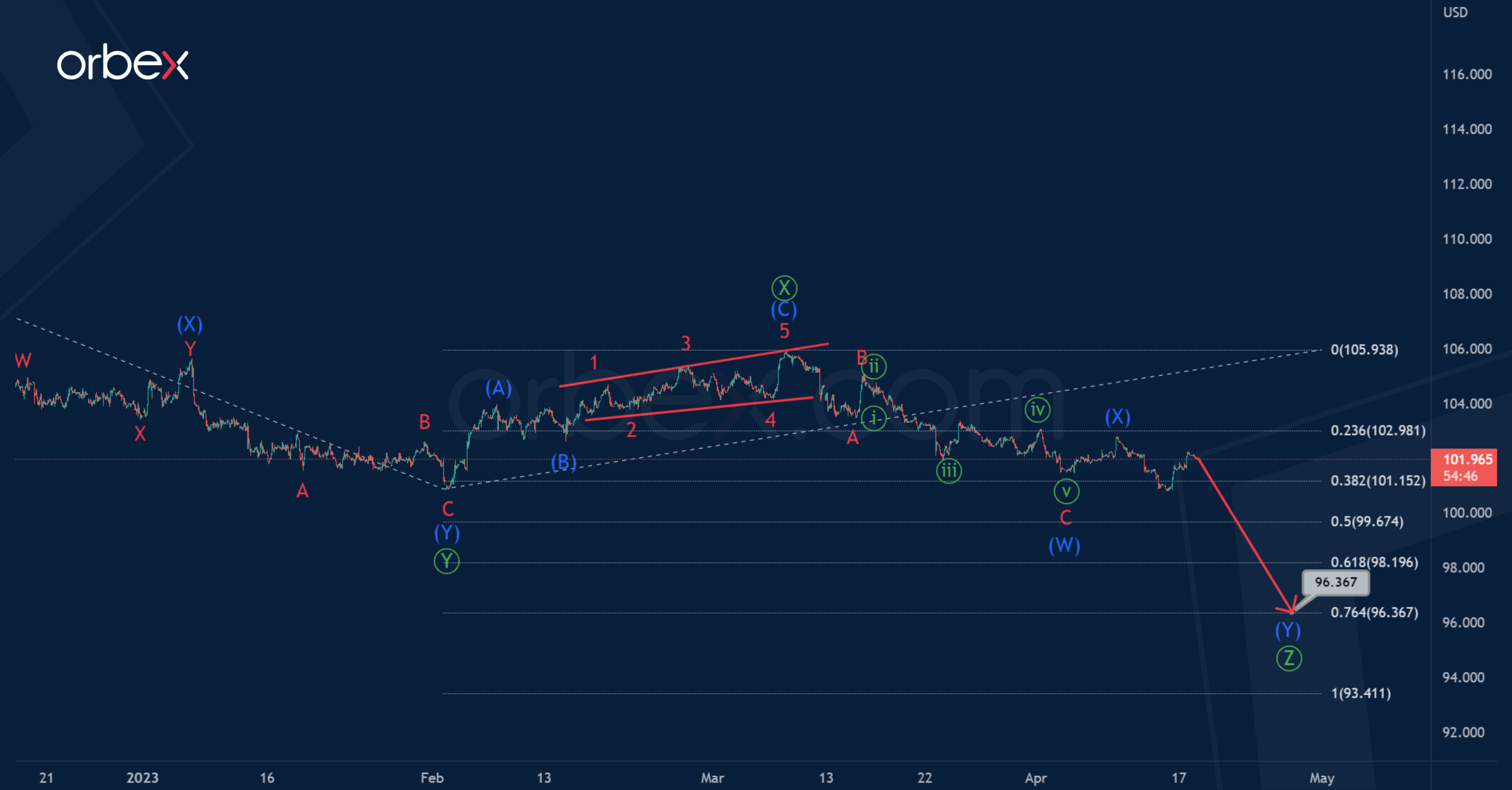The final of the bearish trend is expected closer to the 96.367 mark. At that level, primary wave Ⓩ will be at 76.4% of wave Ⓨ.