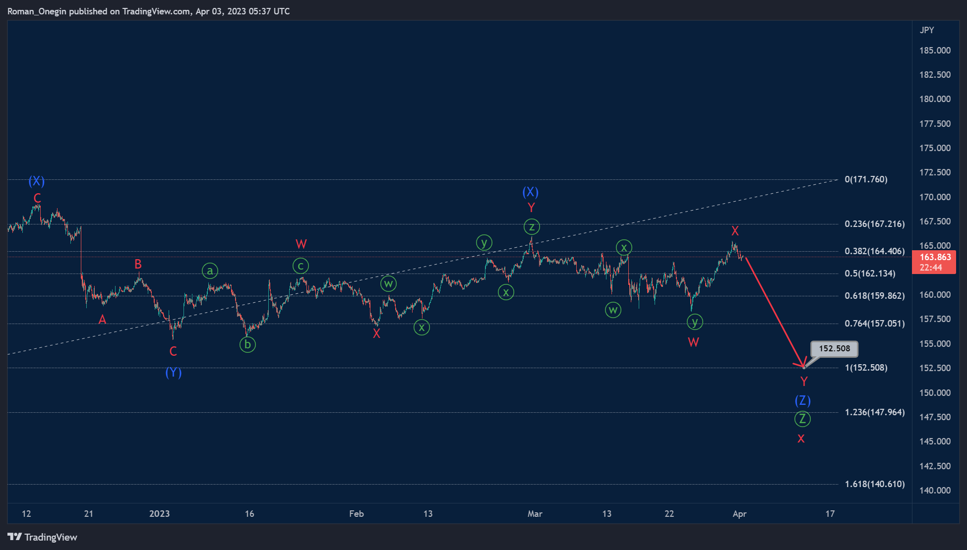 Bulls look to aim at the level of 173.37. At that level, minor wave Z will be 161.8% of wave Y.