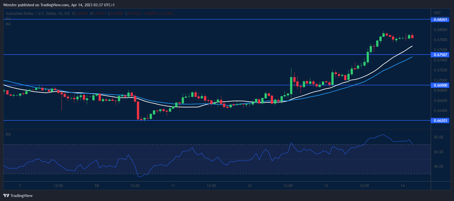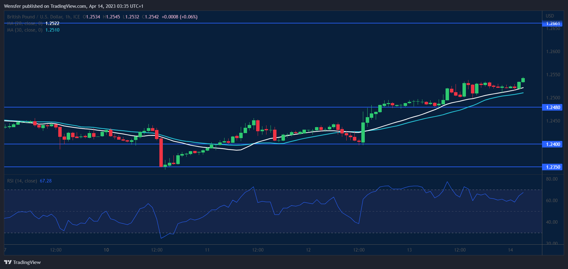 Sterling advanced after an upward revision to January’s growth in Britain. The pair has held well following its break above the double top at 1.2440 on the daily chart with 1.2350 established as a solid support. A close back above 1.2440 is a sign of sustained buying interest as the bulls anticipate a new round of rally. A break above the peak at 1.2520 may release bullish inertia and extend gains towards May 2022’s high of 1.2660. As the RSI ventured into the overbought area, 1.2480 is the first support in case of a pullback.