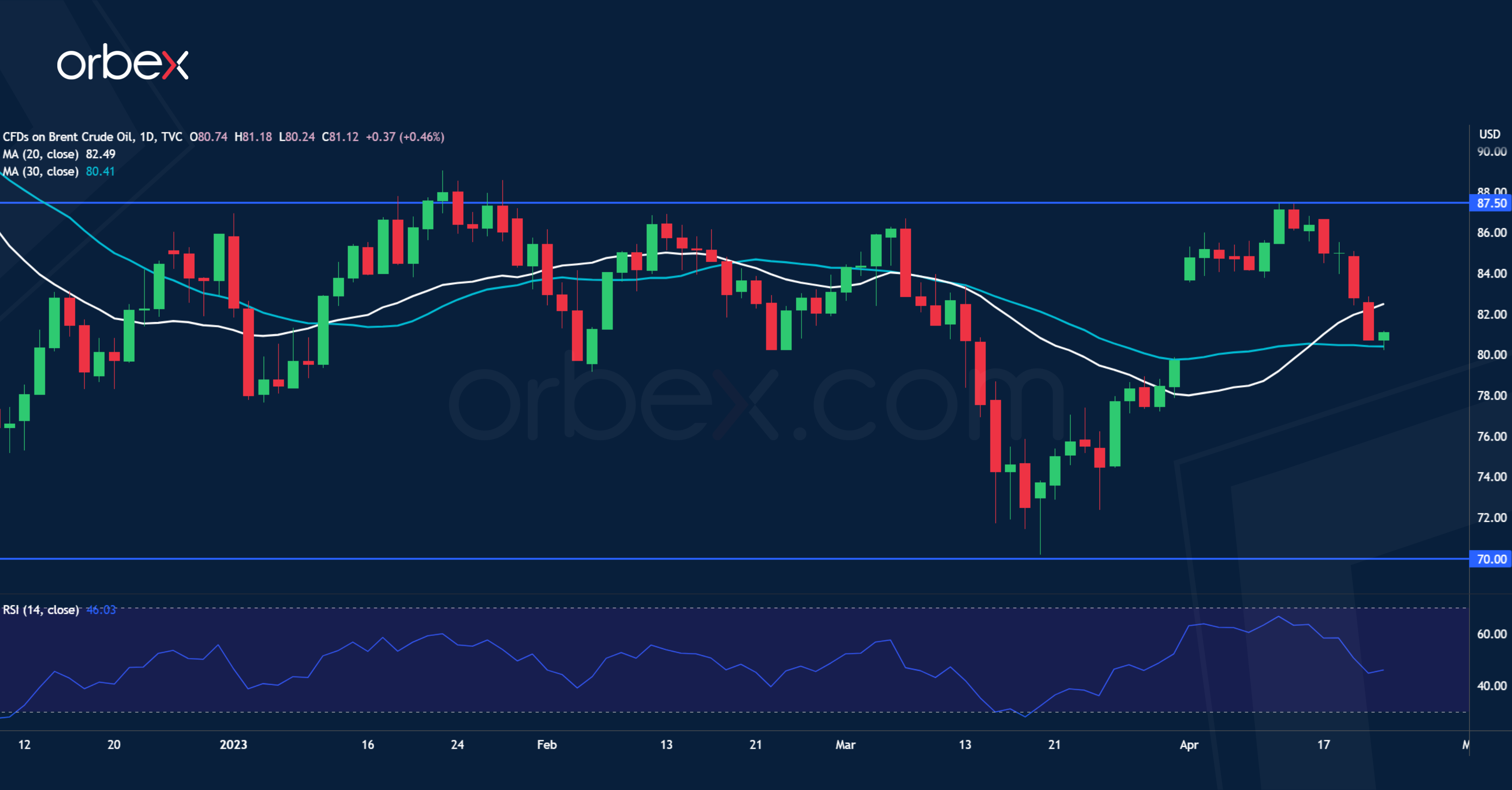 Brent crude slipped over a dim outlook amid high borrowing costs. Ongoing global interest rate hikes still weigh on sentiment. While the US is reaching the end of the road, more tightening pressures in the EU and the UK keep traders on their toes. The pullback has given up most of the gains from a surprise OPEC+ production cut announcement. Not even a better-than-expected Chinese GDP figure and a steep decline in US crude stockpiles managed to halt the price correction. This is fairly indicative of the overall wariness about demand growth for the rest of the year. 87.50 is a fresh resistance and 70.00 remains a critical floor.