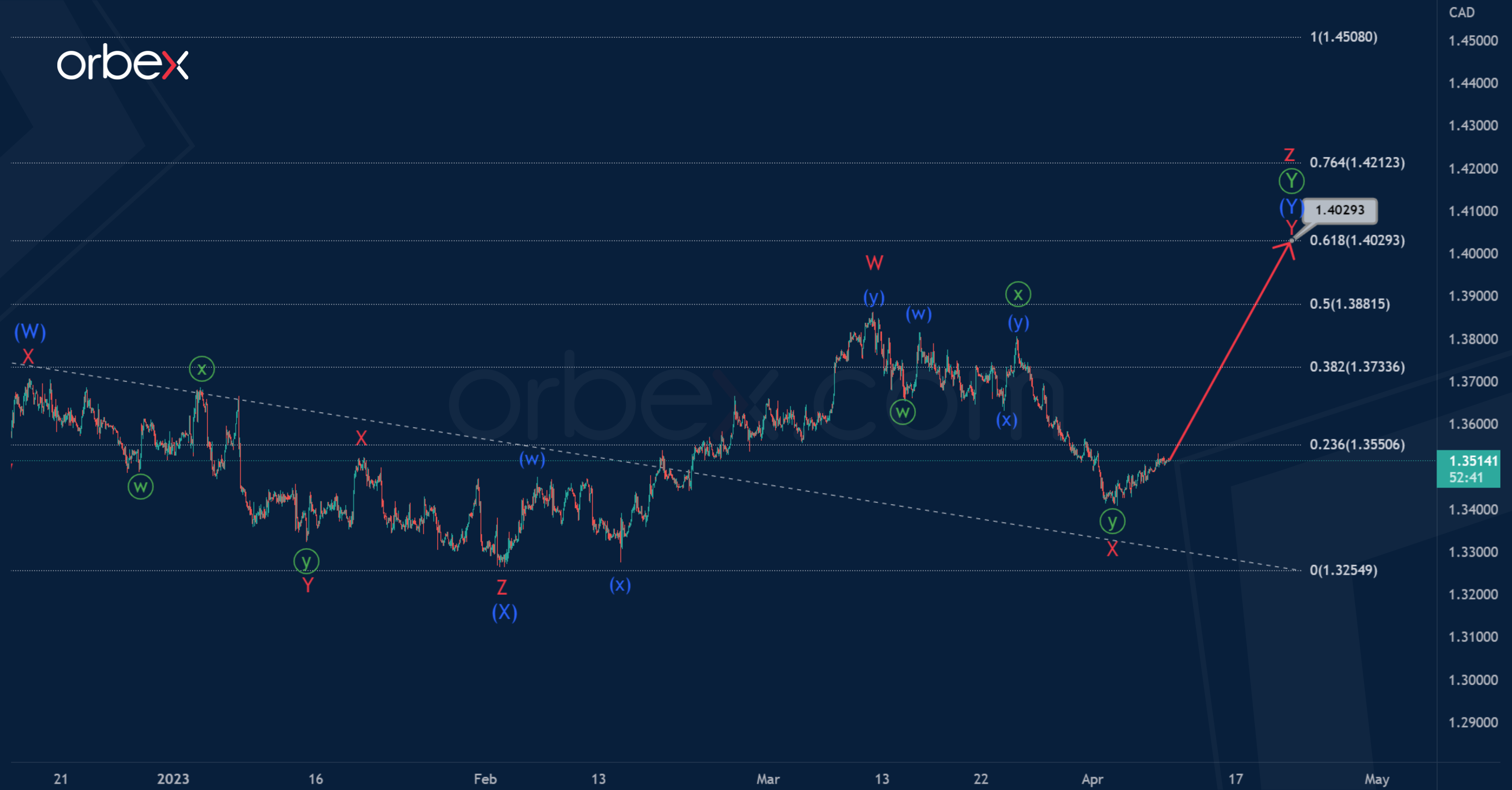 For the USDCAD currency pair, a triple zigzag with cycle waves w-x-y-x-z is emerging.