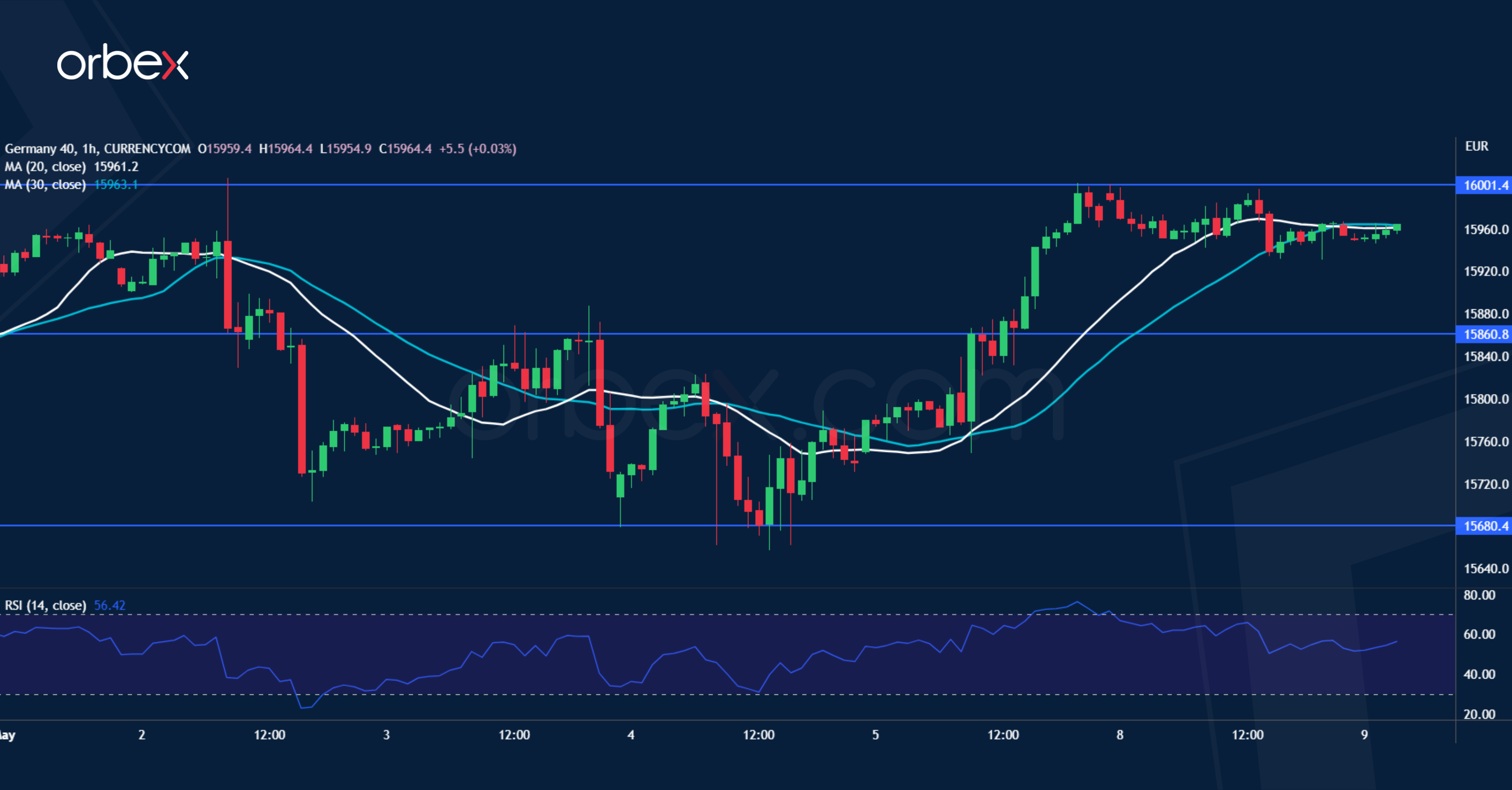 The Dax 40 takes a breather after lacklustre German industrial production. A pop above 15860 then the recent peak of 15960 has put the index back on track after it found solid support over the 30-day SMA (15680). This confirms that the market mood remains optimistic and the consolidation was merely an opportunity for the bulls to stake in with 15860 becoming a fresh support. The psychological level of 16000 would be a formality before the price retests the all-time high of 16300 from January 2022.