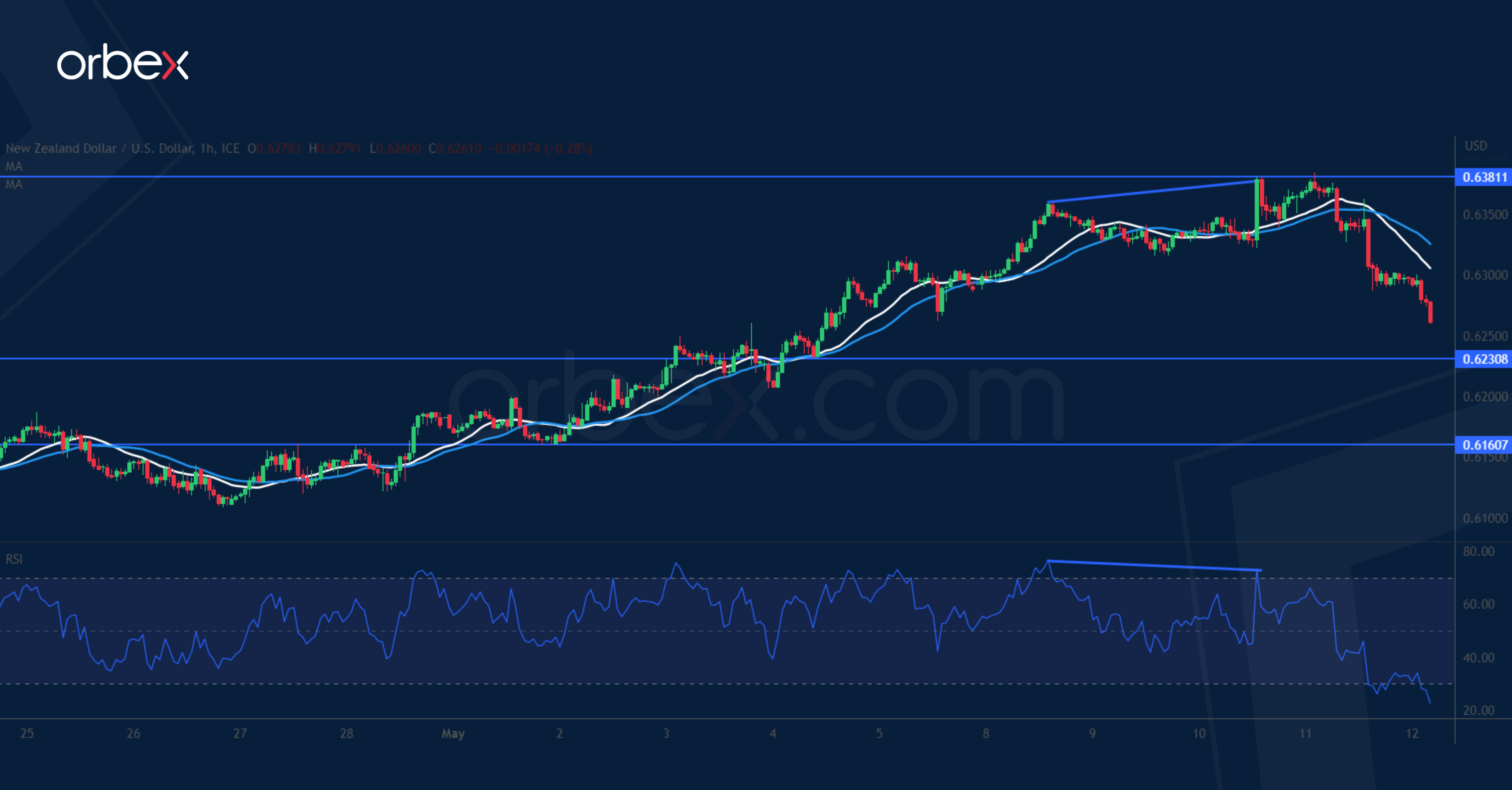 The New Zealand dollar fell as weak US economic data weighed on risk appetite. The pair is looking to hold on to its gains after a tentative break above the April spike of 0.6380. While sentiment might have turned bullish, the rally could be running out of steam in the short-term with a bearish RSI divergence indicating a loss of momentum. A break below the immediate support of 0.6320 would force leveraged buyers to bail out and trigger a correction. 0.6230 on the 20-day SMA is the next level to gauge buying interest.